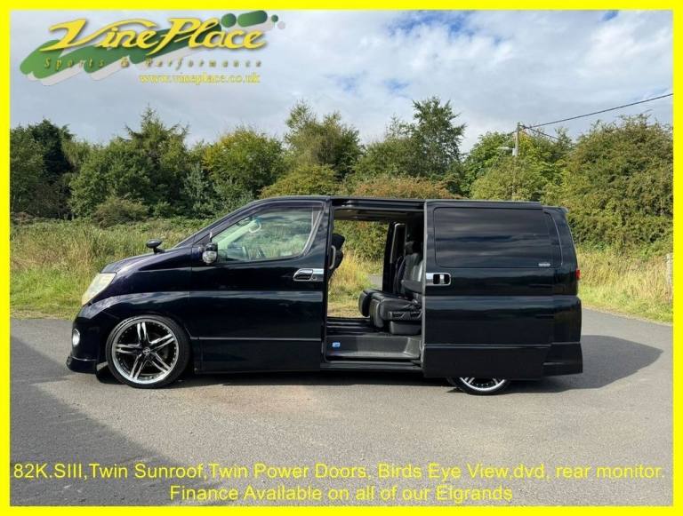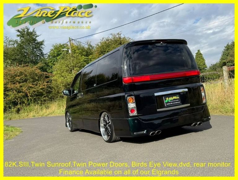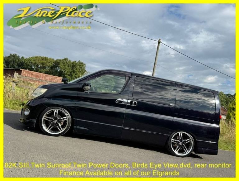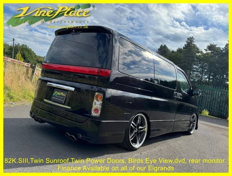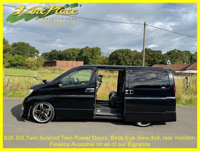 Introducing our top-selling model, the Nissan Elgrand E51 Highway Star Black Leather Edition. . It is an 8 seat, petrol automatic. Boasting a sleek dark interior, this vehicle is stylish but also highly practical for most owners. Enjoy the ultimate luxury with full leather seats, the fronts being heated. The model offers a superbly comfortable driving experience and was offered new with a large range of options. This car is a great spec SIII 3.5 with twin sunroofs, twin power doors, DVD, drop down rear monitor, birds eye view monitor and front and rear parking sensors. It has a set of upgraded alloys wheels, lowered suspension, a four pipe exhaust system and a factory lip spoiler. Please note the suspension on this car is low and stiff. Its a great looking vehicle however its not the van to take the family on a European tour. + ULEZ Compliant (London). + Fresh from Japan. + 82K warranted miles with BIMTA/AA mileage certificate. + Grade 4 vehicle (non-accident history in good order). + All factory recalls carried out. + SIII Black Leather Edition. + Black full leather seats with fronts heated and drivers&039; electric adjustment.. + Twin sunroofs, the rear one being remote control. + Remote control rear drop down monitor. + DVD. + Birds eye view camera system. + Front parking sensors. + Rear parking sensor. + Twin remote control power doors. + Remote control power door. + Captains middle seats with leg rests. + Keyless entry and starting. + Optional factory lip spoiler. + Retractable mirrors. + XENON Headlamps for superb night-time vision. + Directional Headlamp System (AFS). + Nissan NATS alarm and immobiliser security system. + Privacy glass. + 4 Pipe exhaust. + 19 inch alloy wheels. + Lowered suspension. + Front lip spoiler. + 2 Remote key fobs. + Rear catalytic converters will be de-cored. Does not affect the MOT + Fog light incorporated into original rear light unit. + Exposed areas of floor and chassis to be undersealed with Body-shutz. + Includes Bluetooth adapter to allow streaming to car audio. + Nationwide delivery £199. (£299 Devon, Cornwall, and South/West Wales) + Supplied with comprehensive service and MOT (inc. advisories). + MPH speedometer available as an optional extra. + Towbar available as an optional extra. (fixed/removable, 8/13Pin) + Roof bars available as an optional extra. + UK Menu conversion is available as an optional extra. (SIII only) + Full integrated upgrade to Apple CarPlay and Android.