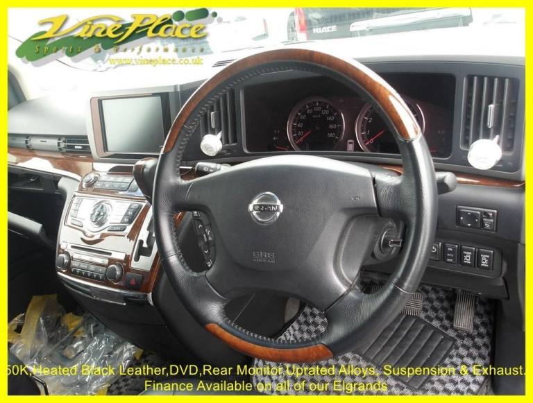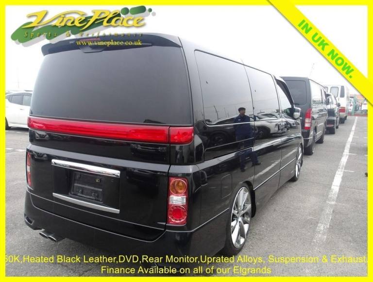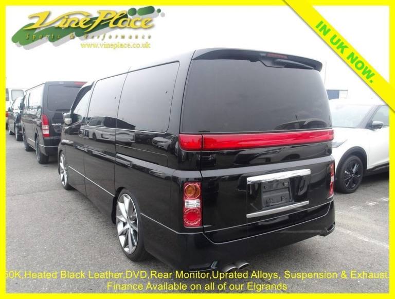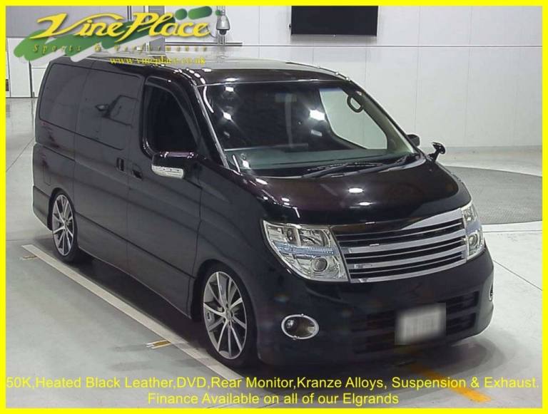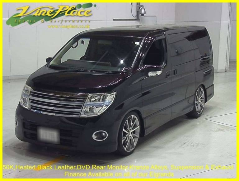Introducing our top-selling model, the Nissan Elgrand E51 Highway Star Black Leather Edition. . It is an 8 seat, petrol automatic. Boasting a sleek dark interior, this vehicle is stylish but also highly practical for most owners. Enjoy the ultimate luxury with full leather seats, the fronts being heated. The model offers a superbly comfortable driving experience and was offered new with a large range of options. This car is a 3.5 RWD and has covered just 50K miles from new. It has coilover suspension, though we can return to standard at no extra cost if preffered, sports exhaust, Rider grill and genuine (Japanese) Kranze alloy wheels. + ULEZ Compliant (London). + Fresh from Japan. + 50K warranted miles with BIMTA/AA mileage certificate. + Grade 4 vehicle (non-accident history in good order). + All factory recalls carried out. + SIII Black Leather Edition Limited. + Black full leather seats with fronts heated and drivers electric adjustment. + Remote control rear drop down monitor. + DVD. + Colour reverse and front/side camera. + Twin remote control power doors. + Captains middle seats with leg rests. + Keyless entry and starting. + Retractable mirrors. + XENON Headlamps for superb night-time vision. + Directional Headlamp System (AFS). + Nissan NATS alarm and immobiliser security system. + Privacy glass. + Sports exhaust. + Coilovers suspension. Can be converted to standard free of charge for a better ride. + Genuine Japanese Kranze alloy wheels. + 2 Remote key fobs. + Rear catalytic converters will be de-cored. Does not affect the MOT + Fog light incorporated into original rear light unit. + Exposed areas of floor and chassis to be undersealed with Body-shutz. + Includes Bluetooth adapter to allow streaming to car audio. + Nationwide delivery £199. (£299 Devon, Cornwall, and South/West Wales) + Supplied with comprehensive service and MOT (inc. advisories). + MPH speedometer available as an optional extra. + Towbar available as an optional extra. (fixed/removable, 7/13Pin) + Roof bars available as an optional extra. + UK Menu conversion is available as an optional extra. (SIII only) + Full integrated upgrade to Apple CarPlay and Android Auto Available as an optional extra (retains original look). (SII only) + Cruise control available as an optional extra. + Switchable power/economy upgrade available as an optional extra. + This vehicle can be reserved with a deposit of £250, refundable in the unlikely event that wh.