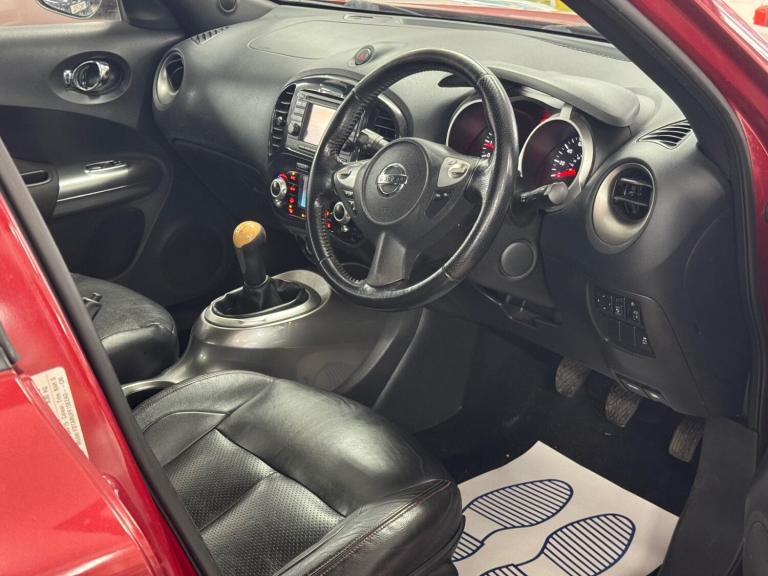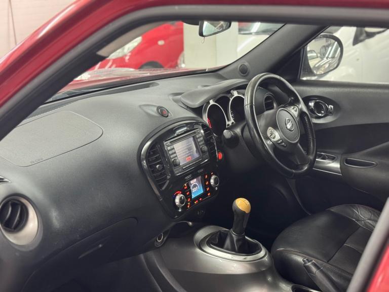 Nissan Juke 1.6 Tekna 5dr top of the range model with premium specification | Reliable and responsive 1.6 petrol engine offering a great balance of performance and economy | Tekna trim which is the top spec in the Juke range | Full leather seats adding comfort and a high quality feel | Heated seats perfect for colder mornings and added luxury | Reverse camera making parking and manoeuvring easy and safe | Alloy wheels enhancing the sporty and stylish design | Five door layout providing practicality and everyday usability | Elevated driving position with excellent road visibility | Three months engine and gearbox warranty included for peace of mind | Ideal for drivers wanting a compact SUV with premium features | Perfect for commuters thanks to comfortable seating and strong road presence | Also well suited for small families or anyone looking for a stylish well equipped crossover with a high specification interior