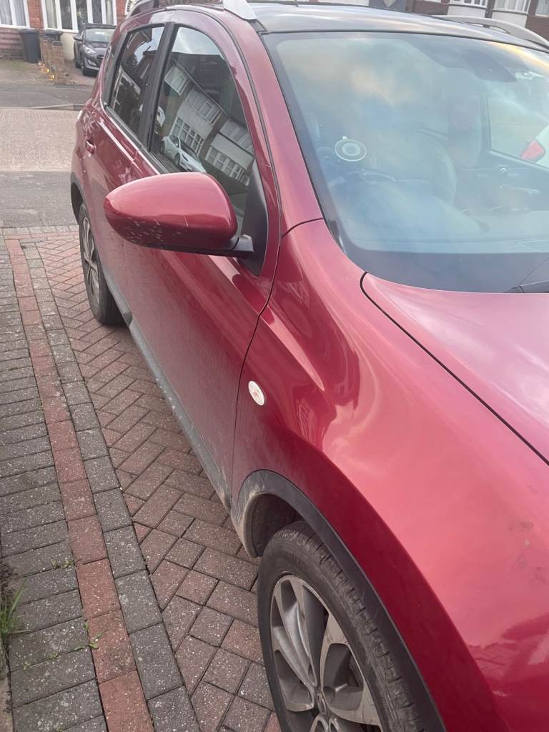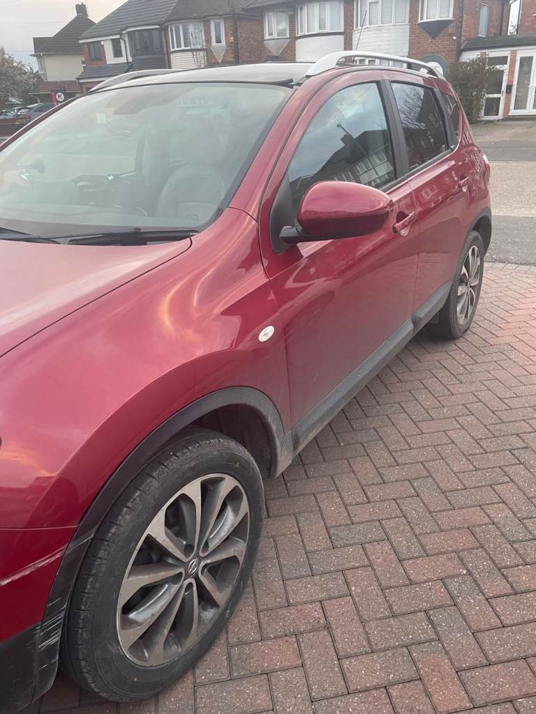 2011 Nissan Qashqai Tekna Pure Drive 1.5 dCi, 6-speed manual, 143,000 miles. Top-spec Tekna model in red/burgundy with heated leather seats, panoramic glass roof, reverse camera, sat nav, Bose sound system, keyless entry/start, climate control, cruise control, alloy wheels and more. Recently had all 4 injectors replaced, 2 brand new front tyres fitted, and wheel alignment done. Car drives perfectly and has no issues. Bodywork has some age-related bumps, scratches and scuffs as shown in the photos, which is reflected in the price. Clean interior, well equipped, comfortable and economical car. Reason for sale: upgrading to a 7-seater. £1,995 ono.