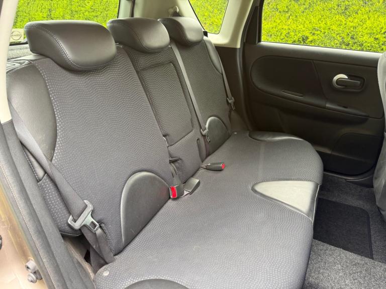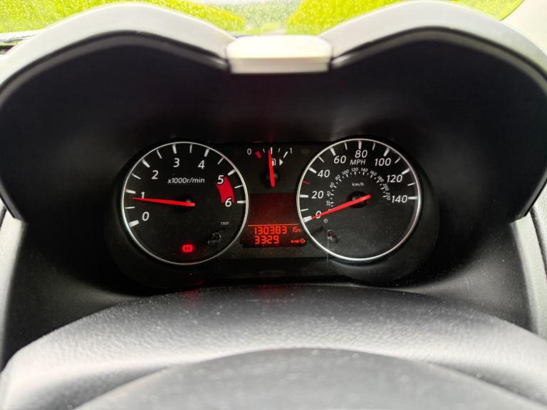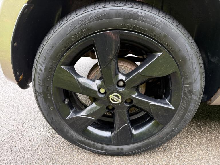 3 point seatbelts on all rear seats, Childproof rear door locks, Curtain airbags, Driver and passenger airbags, Passenger airbag cut-off device, Side airbags, Engine immobiliser, Remote central door locking, Anti lock brake system with Brake Assist, Electronic Stability Programme, Electric heated door mirrors, Silver door mirrors, Automatic rain sensing wipers, Electric front windows, Electric rear windows, Rear privacy glass, Rear wiper, Two speed wiper with variable intermittent, Body colour bumpers, Body colour door handles, Body colour side mouldings, Chrome fog light surround, High gloss black front grille, Solid paint, Auto lighting, Friendly lighting system, Front fog lamps, Headlamp levelling, 3 rear head restraints, 60/40 split sliding rear seats, Driver's seat height adjustment, Front headrests, Front seat backrest storage nets, Front seatback pocket, Isofix child seat preparation, Piano Black trim, Front cabin and boot lamps, Rear cabin lamp, Air conditioned glovebox, Centre console storage, Cloth/leather upholstery, Driver's seat armrest, Flexiboard boot storage system, Front passenger underseat storage tray, Rear centre armrest, Sport leather steering wheel, Tilt adjustable steering wheel, Climate control, Pollen filter, Cruise control + speed limiter, Electric speed sensitive power steering, Rear parking sensor, Chrome surround combimeter, Digital clock, Digital trip meter, Headlamp on reminder, Integrated Driving computer, Nissan connect sat nav system, Service interval indicator, Bluetooth telephone connection, 6 speakers, Auxiliary socket for external MP3 player, Radio/CD, Steering wheel mounted controls, USB connection, 16" 6 spoke alloys wheels, Space saver spare wheel
