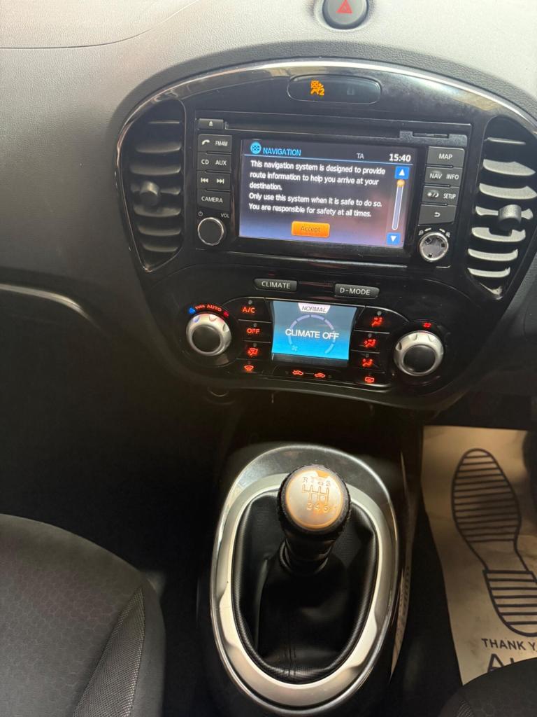 12 MONTHS MOT, JUST SERVICED, SUPERB DRIVE, 6 MONTHS AUTO PROTECT MECHANICAL WARRANTY, for further information , to arrange a test drive please call and speak to a member of our sales team today on [Phone number removed] This 2013 Nissan Juke dCi n-tec offers an exceptional blend of style and economy, making it a smart choice for any driver. Finished in a striking colour and featuring body coloured door handles, this n-tec trim model boasts a 1.5 litre diesel engine that delivers impressive performance. Inside, you'll find a stylish interior with grey or red centre console and door trim finishers, complemented by Bluetooth telephone integration for seamless connectivity. Manoeuvring is made easier with the colour reversing camera, and you can enjoy a comfortable driving environment thanks to the climate control air conditioning.The Nissan Juke dCi n-tec stands out with its remarkable fuel economy, achieving an impressive 59 miles per gallon, which indicates it is more economical than many other vehicles in its class. Furthermore, its low insurance group rating suggests that running costs will be kept to a minimum. The vehicle also benefits from low CO2 emissions, highlighting its efficiency and environmental consideration compared to similar models.