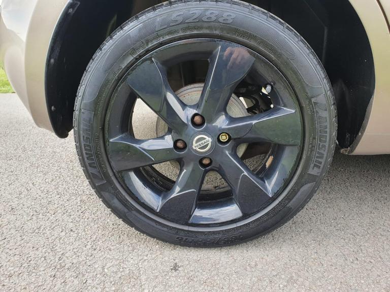 3 point seatbelts on all rear seats, Childproof rear door locks, Curtain airbags, Driver and passenger airbags, Passenger airbag cut-off device, Side airbags, Engine immobiliser, Remote central door locking, Anti lock brake system with Brake Assist, Electronic Stability Programme, Electric heated door mirrors, Silver door mirrors, Automatic rain sensing wipers, Electric front windows, Electric rear windows, Rear privacy glass, Rear wiper, Two speed wiper with variable intermittent, Body colour bumpers, Body colour door handles, Body colour side mouldings, Chrome fog light surround, High gloss black front grille, Solid paint, Auto lighting, Friendly lighting system, Front fog lamps, Headlamp levelling, 3 rear head restraints, 60/40 split sliding rear seats, Driver's seat height adjustment, Front headrests, Front seat backrest storage nets, Front seatback pocket, Isofix child seat preparation, Piano Black trim, Front cabin and boot lamps, Rear cabin lamp, Air conditioned glovebox, Centre console storage, Cloth/leather upholstery, Driver's seat armrest, Flexiboard boot storage system, Front passenger underseat storage tray, Rear centre armrest, Sport leather steering wheel, Tilt adjustable steering wheel, Climate control, Pollen filter, Cruise control + speed limiter, Electric speed sensitive power steering, Rear parking sensor, Chrome surround combimeter, Digital clock, Digital trip meter, Headlamp on reminder, Integrated Driving computer, Nissan connect sat nav system, Service interval indicator, Bluetooth telephone connection, 6 speakers, Auxiliary socket for external MP3 player, Radio/CD, Steering wheel mounted controls, USB connection, 16" 6 spoke alloys wheels, Space saver spare wheel