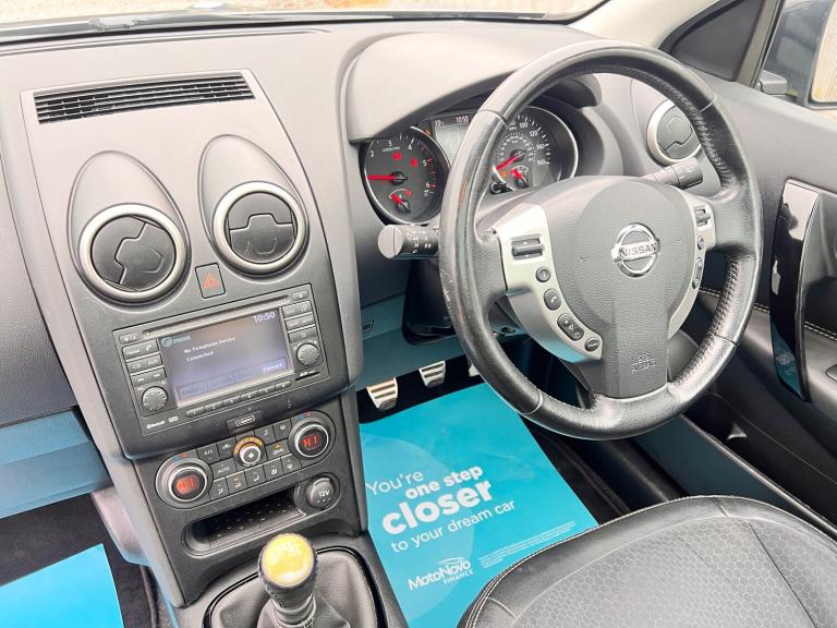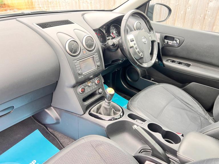 Nissan Qashqai 1.5 dCi 360 SUV Ready to drive away ! - Full Service history (13 services) - Cambelt change in 2019 50k miles - SD for Sat Nav - 2 Keys - MPG Combined 57.6 - Only £165 Road Tax - Part Exchange Welcome - Extended Warranties Available - Finance Available Features Include: , 12v socket - front, aux-in socket, bluetooth telephone integration, cd radio with 6 speakers, nissanconnect, usb - ipod connectivity, 18in alloy wheels - onyx, 360Â’ external badge, bumpers - body coloured, chrome-trimmed lcd combimeter, door mirrors - electric adjustment and heated, door mirrors - gloss black, electric folding door mirrors, electric windows - front and rear, gloss black interior door handle, panoramic glass roof, rear privacy glass, roof rails - gloss black, abs - anti lock brakes, active front head restraints with height adjustment, active front headrests with height adjustment, airbag - driver, airbag - front passenger, airbags - curtain, airbags - side, alarm - ultrasonic, brake assist, ebd - electronic brakeforce distribution, esp - electronic stability programme, engine immobiliser, isofix child seat anchoring points, rear door child locks, remote central locking, speed-sensitive autolock function, traction control, aluminium pedals, ambient footwell lighting, armrest - leather, armrest - rear, auto rain sensing wipers, driver seat height adjustment, dual zone climate control, front armrest, front cupholders x2, front map reading lights, gloss black gear shift surround, head restraints - 3 rear, leather gear knob, leather steering wheel, pollen filter, rear cupholder, rear reading lights, seats - 60-40 split foldable rear bench, seats - drivers lumbar support, steering wheel mounted audio controls, tilt and telescopic adjustable steering wheel, around view monitor - 360 bird-view, cruise control with speed limiter, drive computer, electric speed-sensitive power steering, parking aid - rear, rear parking sensors, trip computer, automatic lighting system, front fog lights