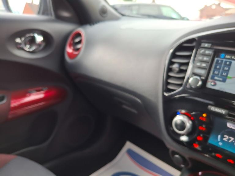 A LOOKING JUKE IN THE METALLIC RED WITH THE GREY TRIM......ONLY 2 FORMER KEEPERS ON THIS ONE AND WITH THE LOW MILES.....IT'S A HIGH SPEC MODEL WHICH INCLUDES THE. ......SATELLITE NAVIGATION SYSTEM......REVERSING CAMERA.....CLIMATE CONTROL.....CRUISE.....BLUETOOTH PHONE CONNECTION......PLUS IT'S 6 SPEED FOR EXTRA ECONOMY......FIND ONE BETTER....
