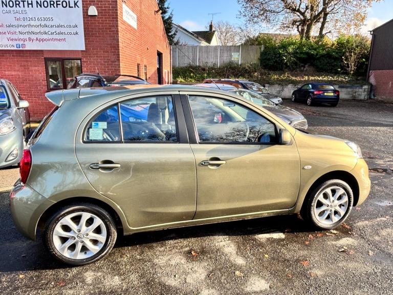 2014/14 Nissan Micra 1.2 Acenta CVT Automatic 5 door with a super low 21000 miles, 2 owner car that has been maintained by a local Nissan main agent from new with the same owner owned the car since 2017. Very hard to find low mileage and low owner small automatic cars at the moment so very pleased to have this in stock.These really are a practical, economical, and reliable small-sized car finished in Verde green with complimenting grey and black interior. Priced to sell at only £6999 including a three-month warranty. These really are a super little car, very reliable and great to drive, economical with over a 52 MPG average and with the advantage of only two owners and super low miles. The Acenta features great specification with all the modern features you would expect and more.Full MOT and service will be placed on the car prior to sale and this car comes with a full service history from a Nissan main agent accompanying the car.Factory specification :CD playerElectric windowsAir conditioning Trip computer Remote central lockingAlloys Bluetooth Sat nav Rear park systemRunning CostsRoad tax per annum £165.00Consumption extra urban 61.4 mpgConsumption combined 52.3 mpgCO2 emission 125 g/kmCO2 label DNorth Norfolk Car Sales Find us on Facebook, our website, call or e-mail ** Viewing by appointment only **