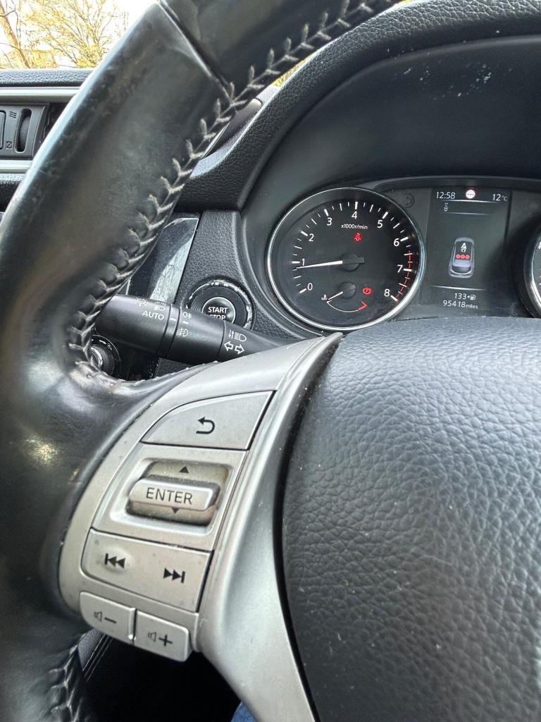 This 2014 Nissan Qashqai 1.2 DIG-T Acenta Premium SUV Finished in Black is a reliable and stylish choice for those in the market for a used car. This 5-door, 5-seater SUV is powered by a petrol engine and boasts a manual transmission, making it perfect for those who enjoy a more hands-on driving experience. With an MOT that expires on 11/12/2026 and being ULEZ compliant, this vehicle offers peace of mind and is ready to hit the road. The exterior features 17in Alloy Wheels, Black Honeycomb Front Grille, and Chrome Glass Surround, giving it a sleek and modern look together with a panoramic roof .The interior features Sat nav full screen with reverse camera and parking sensors .Body Coloured Handles and Bumpers, adding to its overall stylish appeal. This Qashqai is a practical and spacious choice for families or those who need extra room for cargo. Please take a look at our excellent Google reviews Octagon Cars Southampton. Features Include: , 17in alloy wheels - 5-spoke in silver, black honeycomb front grille, body coloured handles, bumpers - body coloured, chrome glass surround, door mirrors - body coloured, door mirrors - power fold and heated, front and rear electric windows, panoramic glass roof, puncture repair kit, rear privacy glass, 6 speakers, aux-in socket, dab radio, radio-cd, satellite navigation - nissan connect, telephone - bluetooth integration, touch screen 7in, usb port, 60-40 split rear folding seats, armrest - rear, auto dimming rear view mirror, auto rain sensing wipers, climate control - dual zone, driver seat height adjustment, front armrest, head restraints - active front, head restraints - rear, interior ambient lighting, leather gear knob, leather steering wheel, luggage board system, lumbar support, pollen filter, push start-stop button, rear cupholder, service indicator, steering wheel mounted audio controls, tilt and telescopic adjustable steering wheel, abs - anti lock brakes, airbag - driver, airbag - passenger, airbags - curtain, airbags - side, alarm, brake assist, ebd - electronic brakeforce distribution, esp - electronic stability programme, front collision avoidance, hill start assist, isofix childseat anchorage points - middle row outer seats, immobiliser, intelligent key, rear door child locks, smart vision pack, speed-sensitive autolock function, traction control, e-pkb - electric parking brake, cruise control with speed limiter, electric speed-sensitive power steering, lane departure warning, parking sensor -