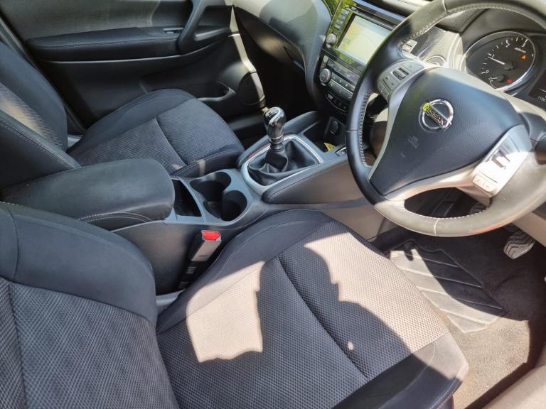 CAT S, Professionally repaired, Child locks on rear doors, Curtain airbags, Driver/front passenger airbag, Height adjustable front seatbelts, Side airbags, Three 3 point rear seatbelts, Tyre pressure monitoring system, Alarm, Immobiliser, Intelligent Key, Remote central locking, Anti-lock Brake System, brake assist and Electronic Brakeforce Distribution, Electronic parking brake, Electronic Stability Programme + traction control, Hill start assist, Diesel particulate filter, Electric folding and heated door mirrors, Interior mirror with automatic anti dazzle, 2 speed wipers+variable intermittent wipe, Electric front/rear windows, Privacy glass, Rain sensor windscreen wipers, Rear wiper, Black honeycomb front grille, Body colour bumpers, Body colour door mirrors and handles, Chrome window surround, Panoramic sunroof with one touch shade, Solid paint, Automatic headlamp activation, Front fog lights with chrome surrounds, High beam assist, LED daytime running lights, 60/40 split folding rear seat, Driver's lumbar support, Driver/passenger front seatback pockets, Front headrests, Front seat belt pre-tensioners with load limiters, Height adjustable driver's seat, Isofix child seat preparation, Rear headrests, Ambient interior lighting, Footwell ambient lighting, Illuminated glovebox, Map reading lamp, 12V socket, Cloth upholstery, Front armrest, Front cupholders x 2, Leather gearknob, Leather steering wheel, Luggage area divider, Rake/reach adjustable steering wheel, Rear armrest with 2 cupholders, Dual zone climate control, Pollen filter, Push button starter, Cruise control, Forward collision warning, Front and rear parking sensors, Lane departure warning system, Power assisted steering, Rear view camera, Speed limiter, Traffic sign recognition, Nissan connect sat nav system, Service interval indicator, Trip computer, Bluetooth phone integration system, 6 speakers, Audio remote control, DAB radio/CD player, USB/aux input socket, 17" Silver alloy wheels, Tyre puncture repair kit