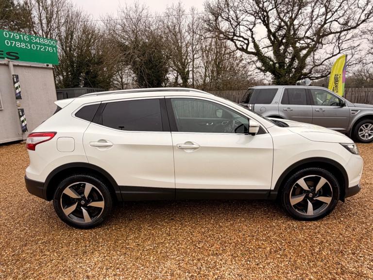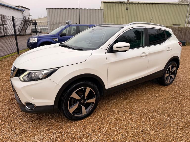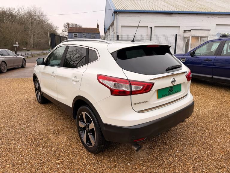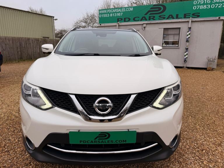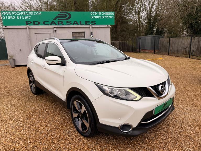 2015 65 Nissan Qashqai 1.2 Turbo petrol, six speed manual gearbox,Facelift model with full service history 10 stamps, Metallic pearl white, 360 reversing camera, Side & Front cameras, Sat Nav, Cruise Control, Dual climate control / Air Conditioning, Alloys in good condition with matching Michelin tyres all round. Panoramic glass tinted sunroof with Electric blind, very economical cheap to run and insure, Factory tinted windows, Daytime led lights - rear boot cover with removable boot sections, Leather multi function steering wheel, electric parking brake, Bluetooth connection DAB radio, two times remote keys, roof rails, isofix seats, front fog lights, keyless entry, front and rear parking sensors, electric heated wing mirrors with LED indicators with side cameras, Information about the vehicle above is provided for guidance. It does not make any representations or warranties that such information is correct. The details advertised should not be taken as truth or accuracy of the content of this information. Please satisfy yourself before purchase that the information is correct by contacting the seller. PD CAR SALES is a family run business with over 50 years experience in the motor trade, We offer selected quality used cars and 4x4s sourced from our trusted suppliers. All vehicles are prepared to a good standard, with competitive prices ensuring we offer the best vehicle for your money. 5 Star google reviews, LOCATED ON TOTTENHILL RETAIL PARK ON THE A10 BETWEEN KINGS LYNN AND DOWNHAM MARKET