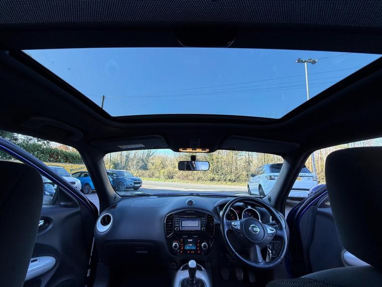This 2015 Nissan Juke DIG T Acenta Premium boasts a full dealership service history and has had only one owner from new. This stylish hatchback features a 1.2 litre petrol engine and comes with 12 months MOT for your peace of mind. Inside, you'll find comfortable grey premium fabric upholstery complemented by a black centre console, while the exterior is enhanced by a black exterior plus pack. The Acenta Premium trim level includes a comprehensive Safety Comfort Pack, which incorporates Blind Spot Assistance, an opening panoramic sunroof, and a 360 degree parking assistance camera system.This Nissan Juke offers excellent value, highlighted by its low insurance group, making it an economical choice for many drivers. You can also expect impressive fuel economy, achieving up to 50 miles per gallon, and it benefits from low CO2 emissions. These factors combined indicate that this Juke is a more cost effective and environmentally conscious option compared to many other vehicles in its class.