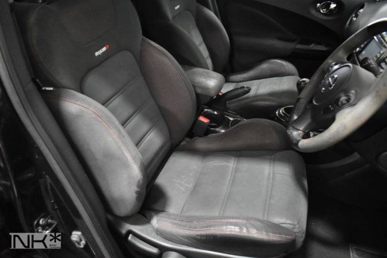 Low Rate Finance & UK Delivery Available. This 2015 Nissan Juke DIG-T Nismo RS presents an exceptional find with its remarkably low mileage of just 46,352 miles. This particular Nismo RS variant boasts a spirited 1.6 litre petrol engine, capable of accelerating from 0 to 62 miles per hour in a swift 7.8 seconds. The vehicle history check is clear, offering peace of mind for its next owner. Inside, youll discover the comfort and support of Alcantara and leather Recaro seats in a striking black and red finish, complemented by climate control for a pleasant driving environment. Further enhancing this Jukes appeal is the Tech Pack, which includes advanced features such as Blind Spot Assistance (BLIS), Xenon headlights for superior visibility, and a 360 degree camera system for effortless parking. Bluetooth integration allows for seamless telephone connectivity, and keyless entry adds a layer of convenience. Its low insurance group rating also makes it an economical choice. These highlights collectively demonstrate how this Nissan Juke DIG-T Nismo RS stands out from other vehicles in its class..12V Socket - Front, 18in Alloy Wheels, 60-40 Split Rear Folding Seats, ABS - Anti Lock Brakes, AUX-In Socket, Airbag - Driver, Airbag - Front Passenger, Airbags - Curtain, Airbags - Side, Alarm, Body Coloured Handles, Brake Assist, Brake Calipers - Red, Bumpers - Body Coloured, Bumpers - Front and Rear - Nismo, Climate Control, Cruise Control, Diffuser - Nismo, Door Mirrors - Electric Adjustment and Heated, Driver Seat Height Adjustment, EBD - Electronic Brakeforce Distribution, ESP - Electronic Stability Programme, First Aid Kit, Front Fog Lights, Front and Rear Electric Windows, Gear Shift Indicator, Head Restraints - Rear, High Visibility Jackets, ISOFIX Child Seat Anchoring Points, Immobiliser, Keyless Entry, LED Daytime Running Lights, NISMO Leather-Alcantara Steering Wheel with Red Stitching, Nismo Body Kit with Red Insert, Nismo Wheel Arch Mouldings - Body Coloured, Passenger Airbag Cut-Off Switch, Pollen Filter, Power Assisted Steering, Puncture Repair Kit, Radio-CD, Rear Door Child Locks, Rear Parking Camera, Rear Tonneau Cover Integrated into Tailgate, Remote Central Locking, Satellite Navigation - Nissan Connect, Seats - Sports, Side Skirts - Nismo, Sports Exhaust - 100mm Pipe, Steering Wheel - Rake Adjustment, Steering Wheel Mounted Audio Controls, TPMS - Tyre Pressure Monitoring System, Telephone - Bluetooth Integration, Traction Control, Trip Computer, USB Port, Upper and Lower Grille - Nismo, Warning Triangle