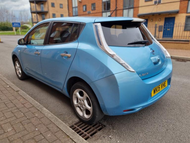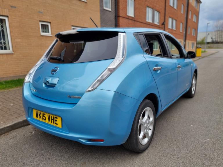 NISSAN LEAF 80kW Acenta 24kWh 5dr Auto (Zero Emission Commuter) An economical and environmentally friendly entry point into electric motoring, this Nissan Leaf is the popular 5-door Acenta specification. This 2015 model, registered WK15VHE, is finished in an attractive Blue and is powered by the 80kW electric motor drawing from the 24kWh battery pack. With 82,786 miles on the odometer, this car is an established and reliable electric runabout. Significantly, the car will be sold with a Full 12 Months MOT on sale, ensuring peace of mind for the new owner. As a pure electric vehicle, this Leaf benefits from 20 VED and zero tailpipe emissions.Key Features:Fuel Type: 100% ElectricBattery: 24kWh (80kW Motor)Doors: 5Registration: WK15VHEYear: 2015Mileage: 82,786 milesColour: BlueMOT: 12 Months MOT provided on sale.Running Costs: 20 Road Tax and low charging costs.Charging: Supports both AC (Home/Destination) and DC CHAdeMO Rapid Charging (0-80% in approximately 30 minutes).Range & Practicality:Typical Real-World Range: Approximately 70-80 miles per full charge (depending on battery health, speed, and weather conditions).Specification: Acenta models typically include features such as a reversing camera, satellite navigation, and automatic climate control.Transmission: Smooth and responsive Automatic transmission.Ideal For:Urban commuting and daily short-to-medium distance journeys.Drivers seeking the lowest possible running costs (fuel, tax, and servicing).A reliable, modern hatchback with no immediate MOT costs.A practical and cost-effective EV ready for its next owner with a full year's MOT.