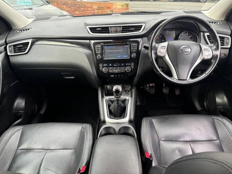 Service history DAB Sat Nav Pan roof Bluetooth Heated seats Electirc drivers seat Auto headlights & wipers Reverse cameras 12 months MOT 6 months warranty This 2015 Nissan Qashqai dCi Tekna is a superb example of a well maintained family car. As a Euro 6 compliant model, it features a 1.5L Diesel engine and benefits from a low insurance group. This Tekna trim level comes equipped with desirable features such as Bluetooth integration for seamless phone connectivity, automatic headlights that adjust to lighting conditions, and front and rear parking sensors to assist with manoeuvring. The intelligent key system allows for convenient keyless entry, making your daily journeys that little bit easier. You will appreciate the impressive fuel economy of this Qashqai, achieving an outstanding 71 miles per gallon, which indicates it is more economical than many other similar vehicles. Furthermore, its low CO2 emissions highlight its environmental consideration compared to other cars in its class. These combined factors make this Nissan Qashqai a sensible and cost effective choice for your next vehicle..19in Alloy Wheels - 5-Spoke, 6 Speakers, 60-40 Split Rear Folding Seats, ABS - Anti Lock Brakes, AUX-In Socket, Airbag - Driver, Airbag - Passenger, Airbags - Curtain, Airbags - Side, Alarm, Armrest - Rear, Around View Monitor - 360 Bird-View, Auto Dimming Rear View Mirror, Auto Rain Sensing Wipers, Black Honeycomb Front Grille, Blind Spot Warning, Body Coloured Handles, Brake Assist, Bumpers - Body Coloured, Chrome Glass Surround, Climate Control - Dual Zone, Colour Side Camera, Cruise Control with Speed Limiter, DAB Radio, Door Mirrors - Body Coloured, Door Mirrors - Power Fold and Heated, Driver Attention Alert, Driver Seat Height Adjustment, EBD - Electronic Brakeforce Distribution, ESP - Electronic Stability Programme, Electric Speed-Sensitive Power Steering, Fatigue Alert, Front Armrest, Front Collision Avoidance, Front Fog Lights, Front and Rear Electric Windows, Head Restraints - Active Front, Head Restraints - Rear, Headlights - Auto, Headlights - Auto High-Low Beam, Headlights - Automatic Levelling, Headlights - Bi-LED, Heated Windscreen, Hill Start Assist, ISOFIX Childseat Anchorage Points - Middle Row Outer Seats, Immobiliser, Intelligent Key, Intelligent Park Assist, Interior Ambient Lighting, LED Daytime Running Lights, Lane Departure Warning, Leather Gear Knob, Leather Steering Wheel, Luggage Board System, Lumbar Support, Moving Object Detection, Parking Sensor - Front, Pollen Filter, Puncture Repair Kit, Push Start-Stop Button, Radio-CD, Rear Cupholder, Rear Door Child Locks, Rear Parking Sensor, Rear Privacy Glass, Rear View Camera, Roof Rails - Satin, Safety Shield, Satellite Navigation - Nissan Connect, Seats - Drivers Electric Adjustment, Seats - Heated Front, Seats - Passengers Height Adjustment, Smart Vision Pack, Speed-Sensitive Autolock Function, Steering Wheel Mounted Audio Controls, TPMS - Tyre Pressure Monitoring System, Telephone - Bluetooth Integration, Tilt and Telescopic Adjustable Steering Wheel, Touch Screen 7in, Traction Control, Traffic Sign Recognition, Trip Computer, USB Port, e-PKB - Electric Parking Brake