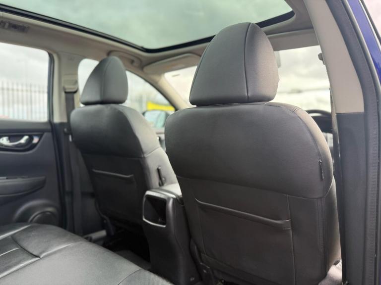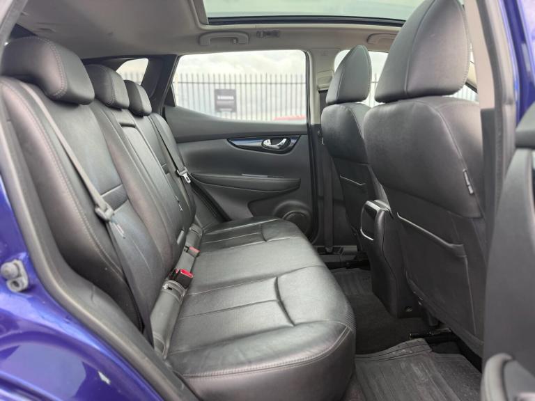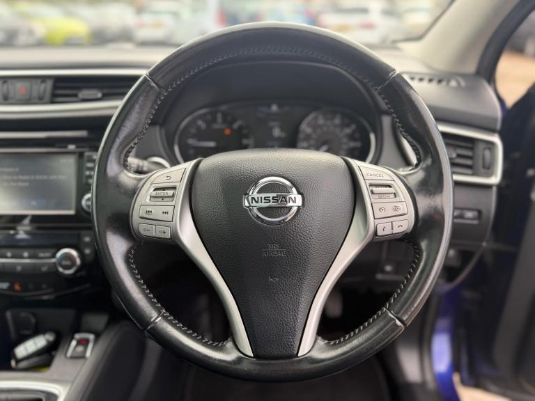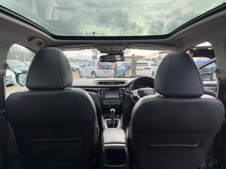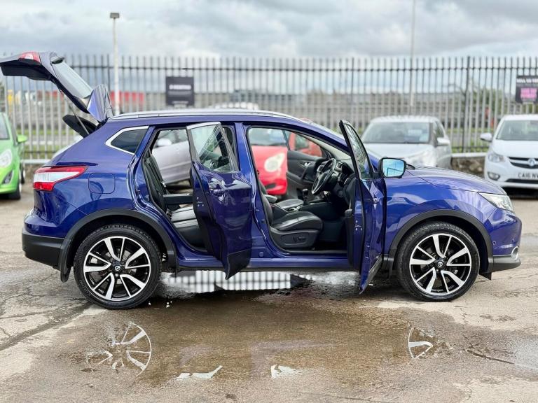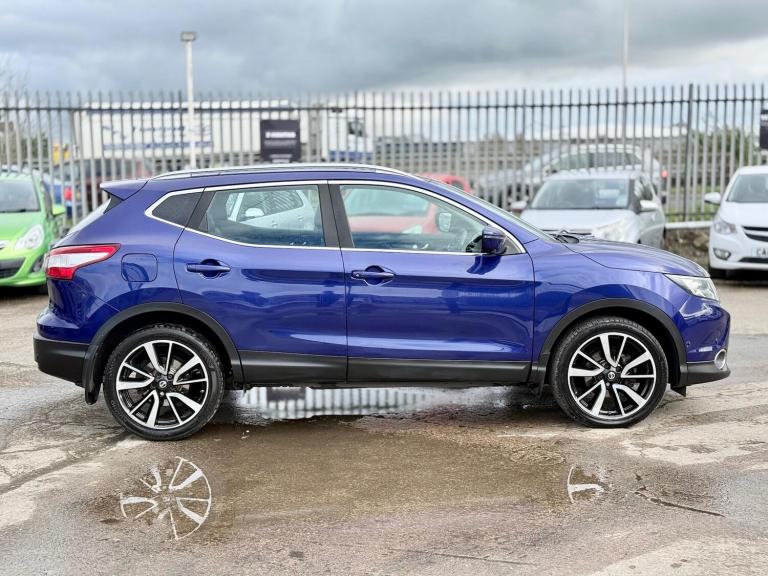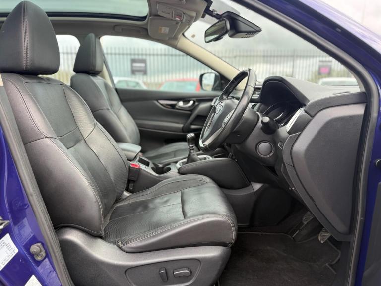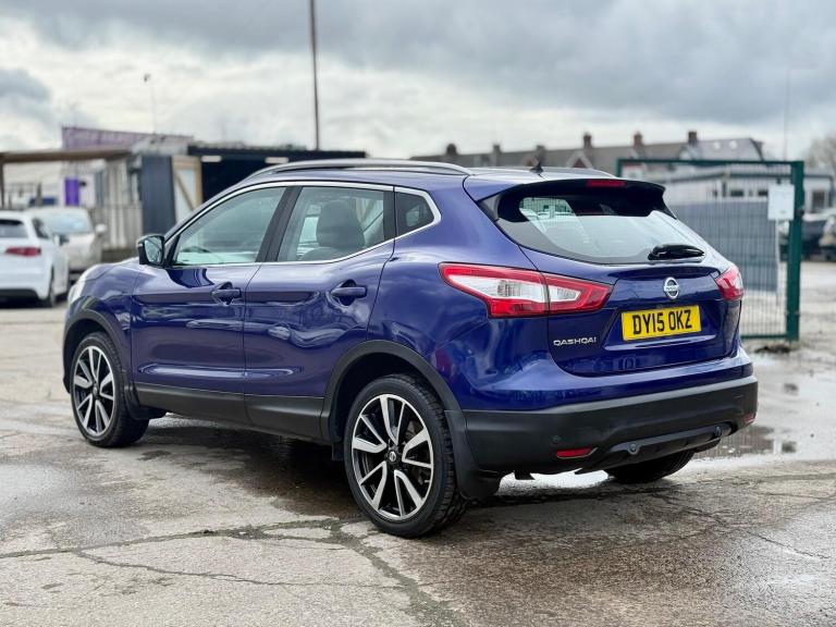 2015 Nissan Qashqai 1.6 dCi Tekna 2WD Euro 5 (s/s) 5dr presented in excellent condition with 2 keys, full service history, a brand new service and MOT.This top-spec Tekna model comes loaded with features including 19in diamond-cut alloy wheels, push button start, hill hold assist, front and rear parking sensors with 360° parking camera, automatic rain sensing wipers, Bi-LED automatic headlights with LED daytime running lights, panoramic glass roof with electric sun blind, electric heated power folding mirrors, front and rear electric windows, heated leather front seats, leather multifunction steering wheel with audio controls, adaptive cruise control with speed limiter, 7in touchscreen infotainment system, DAB radio, satellite navigation, Bluetooth hands-free and media connectivity, dual-zone climate control, front and rear heated windscreen and ISOFIX child seat anchor points.A spacious, high-spec SUV offering comfort, practicality and excellent fuel economy. Perfect family vehicle with premium features throughout.