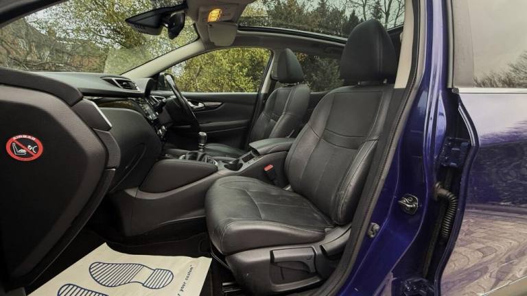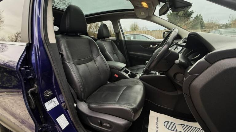 This 2015 Nissan Qashqai DIG-T Tekna is a superb example of this popular model, offering a blend of style and practicality. Powered by an efficient 1.6 litre petrol engine, this Euro 6 compliant vehicle is presented in the desirable Tekna trim. It boasts a host of premium features designed to enhance your driving experience, including a stunning Panoramic Glass Roof with a fixed sunroof, a helpful Rear View Camera for effortless parking, and Front Parking Sensors to assist with manoeuvring. Safety is also a priority, with Blind Spot Warning technology providing an extra layer of awareness on the road, and the comfort of Heated Front Seats for those colder journeys. The Qashqai DIG-T Tekna stands out with its impressive performance, achieving 0-62mph in just 9.1 seconds, demonstrating its responsive acceleration. Furthermore, its classification within a low insurance group indicates that running costs are kept to a minimum, making it an economical choice. The vehicle also benefits from low CO2 emissions, which is a positive indicator of its environmental efficiency compared to many other vehicles in its class. This combination of features, performance, and cost effectiveness makes this Nissan Qashqai a compelling option..19in Alloy Wheels - 5-Spoke, 6 Speakers, 60-40 Split Rear Folding Seats, ABS - Anti Lock Brakes, AUX-In Socket, Airbag - Driver, Airbag - Passenger, Airbags - Curtain, Airbags - Side, Alarm, Armrest - Rear, Around View Monitor - 360 Bird-View, Auto Dimming Rear View Mirror, Auto Rain Sensing Wipers, Black Honeycomb Front Grille, Blind Spot Warning, Body Coloured Handles, Brake Assist, Bumpers - Body Coloured, Chrome Glass Surround, Climate Control - Dual Zone, Cruise Control with Speed Limiter, DAB Radio, Door Mirrors - Body Coloured, Door Mirrors - Power Fold and Heated, Driver Attention Alert, Driver Seat Height Adjustment, EBD - Electronic Brakeforce Distribution, ESP - Electronic Stability Programme, Electric Speed-Sensitive Power Steering, Front Armrest, Front Fog Lights, Front and Rear Electric Windows, Head Restraints - Active Front, Headlights - Auto, Headlights - Automatic Levelling, Headlights - Bi-LED, Heated Windscreen, Hill Start Assist, Immobiliser, Intelligent Key, Intelligent Park Assist, Interior Ambient Lighting, LED Daytime Running Lights, Lane Departure Warning, Leather Gear Knob, Leather Steering Wheel, Luggage Board System, Lumbar Support, Moving Object Detection, Parking Sensor - Front, Pollen Filter, Puncture Repair Kit, Push Start-Stop Button, Radio-CD, Rear Cupholder, Rear Door Child Locks, Rear Parking Sensor, Rear Privacy Glass, Roof Rails, Safety Shield, Satellite Navigation - Nissan Connect, Seats - Drivers Electric Adjustment, Seats - Heated Front, Smart Vision Pack, Speed-Sensitive Autolock Function, Steering Wheel Mounted Audio Controls, TPMS - Tyre Pressure Monitoring System, Telephone - Bluetooth Integration, Tilt and Telescopic Adjustable Steering Wheel, Touch Screen 7in, Traction Control, Traffic Sign Recognition, USB Port, e-PKB - Electric Parking Brake, Colour Side Camera, Fatigue Alert, Front Collision Avoidance, Head Restraints - Rear, Headlights - Auto High-Low Beam, ISOFIX Childseat Anchorage Points - Middle Row Outer Seats, Rear View Camera, Trip Computer, Leather - Graphite, Panoramic Glass Roof