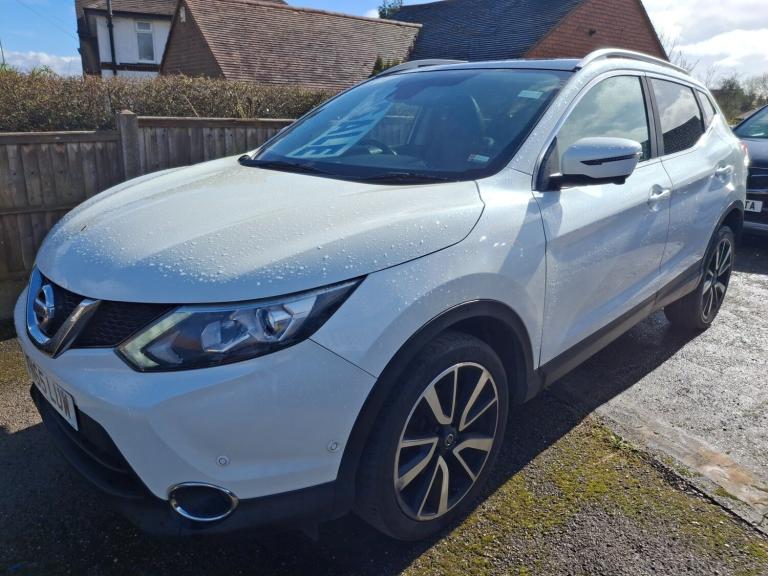 A GREAT LOOKING TOP SPEC QASHQAI IN THE WHITE WITH NICE ALLOYS......ONLY TWO FORMER KEEPERS ON THIS ONE AND WITH VERY SENSIBLE MILES PLUS IT'S SUPPLIED WITH 5 SERVICE STAMPS......A HIGH SPEC MODEL WHICH INCLUDES THE......SATELLITE NAVIGATION SYSTEM....BLUETOOTH PHONE CONNECTION......REVERSING CAMERA....ELECTRIC HANDBRAKE......FULL LEATHER HEATED SEATS.....PANORAMIC GLASS ROOF.....PLUS IT'S 6 SPEED FOR EXTRA ECONOMY......DEFINITELY PRICED TO SELL...... ALL CARS SUPPLIED WITH 12 mths M.O.T. ENGINE OIL AND FILTER CHANGE + ANY TEST DRIVE OR INSPECTION , IF YOU WANT TO FINANCE ANY CAR PLEASE CLICK ON THE FINANCE TAB AND FILL IN OUR ONLINE APPLICATION FORM AND SEND IT TO US WHATEVER YOUR CIRCUMSTANCES .....