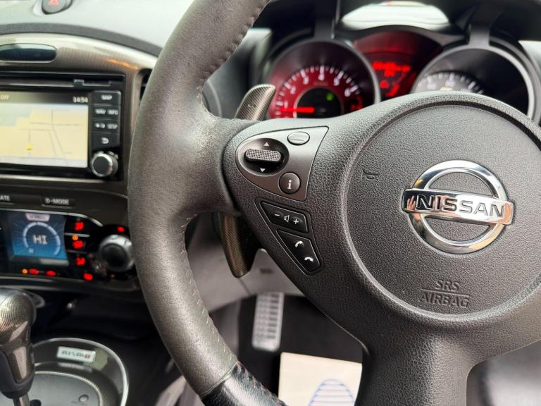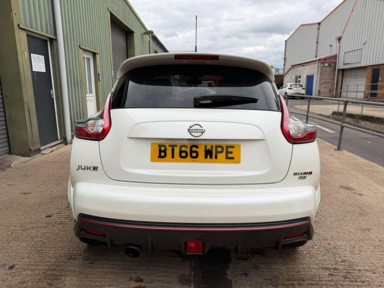 VIEWINGS 7 DAYS A WEEK - PX WELCOME - LOW RATE FINANCE AVAILABLE.Boasting a full service history and a clear vehicle history check, this 2016 Nissan Juke DIG-T Nismo RS is a well maintained example. This four wheel drive model is powered by a 1.6 litre petrol engine and meets Euro 6 emissions standards. It comes with a 6 month warranty for your peace of mind and its MOT is valid until October 2026. The last service was completed at 65,000 miles on 16th October 2025.This Juke Nismo RS is equipped with a desirable Tech Pack, featuring Xenon headlights, 360 degree parking assistance, and Blind Spot Assistance. You'll also find heated front seats, Bluetooth integration for seamless phone connectivity, and a colour reversing camera. For an engaging drive, it includes paddle shifts on the steering wheel, allowing for quick gear changes. Notably, this model offers impressive acceleration, reaching 0-62mph in just 8.0 seconds, and benefits from a low insurance group, making it a cost effective choice compared to similar vehicles.