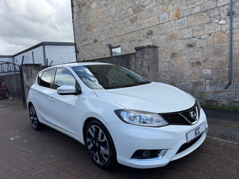 2016 NISSAN PULSAR TEKNA 1.5 DCI TURBO DIESEL 5DR SNOWFLAKE WHITE MET , FULL HEATED LEATHER SPORTS SEATS, 3D SATNAV TOUCHSCREEN, £20 FOR 1 YEARS ROADTAX, WIDESCREEN REVERSE CAMERA FITTED, BLUETOOTH HANDSFREE PHONE SYSTEM WITH VOICE RECOGNITION, TOP OF THE RANGE MODEL, ULEZ COMPLIANT CAN BE DRIVEN IN ANY LOW EMISSION ZONES, CRUISE CONTROL, 18"" BI-COLOUR ALLOYS, PRIVACY GLASS, TECHNOLOGY PACKAGE FITTED, LED SIGNATURE HEADLIGHTS, WILL COME WITH 1 YEARS MOT+ FREE PARTS+ LABOUR WARRANTY ON COLLECTION.