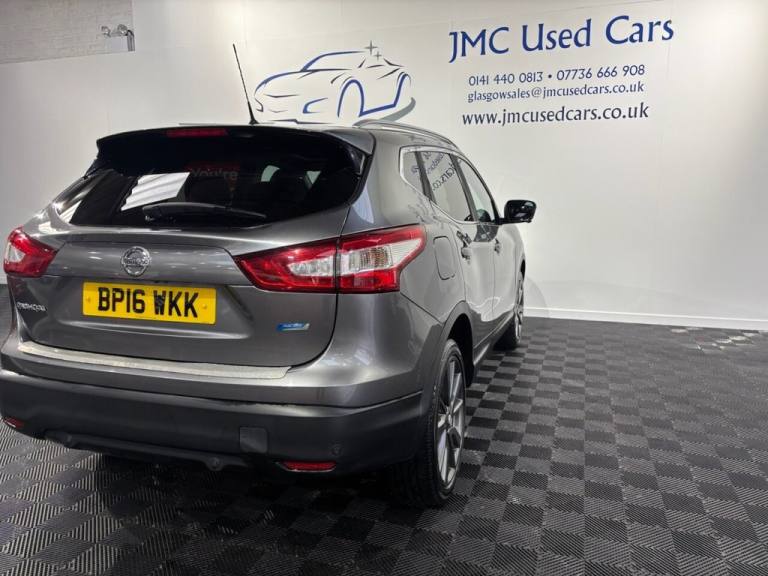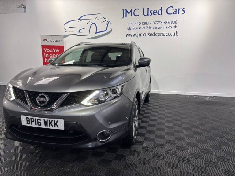 The Nissan Qashqai is one of Europes best-selling compact family SUVs, known for blending practicality, comfort and efficiency in a package that suits both daily use and longer journeys. In 1.5 dCi diesel form with Tekna trim, you get a well-equipped version that includes Bluetooth phone and audio connectivity, DAB digital radio and cruise control — making it a strong all-round choice for drivers looking for connectivity and convenience. Award-Winning Family Business Premium Customer Service & Aftercare Located just off Junction 24 of the M8 in Glasgow, we offer an impressive range of quality used cars, all displayed in our indoor showroom. Each vehicle is meticulously prepared to meet our high standards, ensuring youre driving away with complete confidence. We welcome part exchanges and offer tailored finance and warranty packages to suit every budget. Need help choosing the right car? Our team is here to provide expert advice and support. Cant make it in person? No problem! We offer live video walkarounds of our cars upon request, and you can complete all finance agreements securely online. For more details or to arrange a viewing, contact Martin today. JMC USED CARS WWW.JMCUSEDCARS.CO.UK [Email address removed. Click Email button to contact us.] SERVICE HISTORY, BLUETOOTH, CRUISE CONTROL, FULL LEATHER SEATS, DAB RADIO, Gun Metallic, 19in Alloy Wheels - 5-Spoke, 3 x 3-Point Rear Seatbelts with ELR, 5in High Definition Full Colour TFT Screen Combimeter, 6 Speakers, 60-40 Split Rear Folding Seats, AUX Socket for MP3 Player, Alarm, Automatic Folding Door Mirrors, Automatic Lights and Wipers, Black Honeycomb Front Grille, Bluetooth, Body-coloured Bumpers - Handles and Mirrors, CD Radio, Chrome Glass Surround, Cruise Control with Speed Limiter, Drive Computer, Driver Seat Height Adjustment, Driver-Passenger-Side and Curtain Airbags, Drivers Side One-touch and Anti-trap Window, Dual Zone Climate Control Air Conditioning, ESP ABS EBD and Brake Assist, Electric Speed-Sensitive Power Steering, Executive Pack, Front Centre Console and Armrest, Front Fog Lamps with Chrome Ring, Front Seat Belt Height Adjustment, Front Seat Belts with Load Limiter and Pretensioners, Front and Rear Electric Windows, Head Restraints - 3 Rear, Headlights - Automatic Levelling, Headlights - Bi-LED, Heat Pack, Height Adjustable Front Head Restraints, Hill Start Assist, ISOFIX Child Seat Anchoring Points, Immobiliser, Intelligent Key, Intelligent Park Assist, Interior Ambient Lighting, LED Signature Daytime Running Lights, Leather Gear Knob, Leather Steering Wheel, Luggage Board System, Nissan Chassis Controls, Puncture Repair Kit, Push Start-Stop Button, Rear Door Child Locks, Rear Privacy Glass, Rear Seat Armrest with 2 Cupholders, Remote Audio Control, Roof Rails - Satin Silver, Safety Shield, Seats - Drivers Lumbar Support, Seats - Passengers Height Adjustment, Selectable Steering - Normal or Sport, Smart Vision Pack, TPMS - Tyre Pressure Monitoring System, Tech Pack, Tilt and Telescopic Adjustable Steering Wheel, e-PKB - Electric Parking Brake