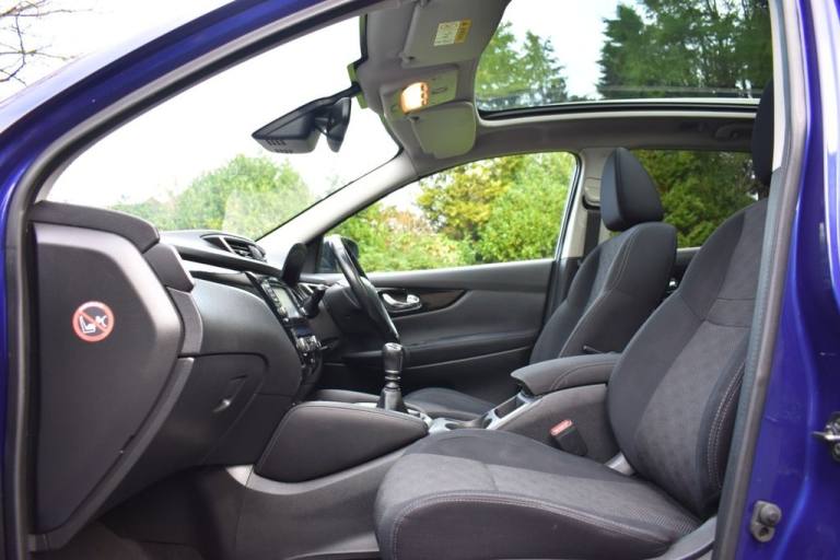 with Black Cloth, 18" 5 Spoke Alloy Wheels, Front and Rear Parking Sensors, Bluetooth, Satellite Navigation, Colour Reverse Camera, Privacy Glass, Electric Folding Mirrors, Cruise Control, Dual Auto Climate Control, Panoramic Glass Roof, DAB Radio, Full Service History, Serviced at 9238, 11633, 32574, 41904, 46869, 47074, 64928 and last serviced at 85389 miles, Mot until 8th October 2026, .FULL SERVICE HISTORY, PANORAMIC GLASS ROOF, SATELLITE NAVIGATION, 18" ALLOY WHEELS, DAB RADIO, 18in Alloy Wheels - Diamond Cut, 3 x 3-Point Rear Seatbelts with ELR, 5in High Definition Full Colour TFT Screen Combimeter, 6 Speakers, 60-40 Split Rear Folding Seats, AUX Socket for MP3 Player, Alarm, Automatic Folding Door Mirrors, Automatic Lights and Wipers, Black Honeycomb Front Grille, Bluetooth, Body-coloured Bumpers - Handles and Mirrors, CD Radio, Chrome Glass Surround, Cruise Control with Speed Limiter, Drive Computer, Driver Seat Height Adjustment, Driver-Passenger-Side and Curtain Airbags, Drivers Side One-touch and Anti-trap Window, Dual Zone Climate Control Air Conditioning, ESP ABS EBD and Brake Assist, Electric Speed-Sensitive Power Steering, Front Centre Console and Armrest, Front Fog Lamps with Chrome Ring, Front Seat Belt Height Adjustment, Front Seat Belts with Load Limiter and Pretensioners, Front and Rear Electric Windows, Head Restraints - 3 Rear, Height Adjustable Front Head Restraints, Hill Start Assist, ISOFIX Child Seat Anchoring Points, Immobiliser, Intelligent Key, Interior Ambient Lighting, LED Signature Daytime Running Lights, Leather Gear Knob, Leather Steering Wheel, Luggage Board System, Nissan Chassis Controls, Premium Pack, Puncture Repair Kit, Push Start-Stop Button, Rear Door Child Locks, Rear Privacy Glass, Rear Seat Armrest with 2 Cupholders, Remote Audio Control, Seats - Drivers Lumbar Support, Seats - Passengers Height Adjustment, Selectable Steering - Normal or Sport, Smart Vision Pack, TPMS - Tyre Pressure Monitoring System, Tech Pack, Tilt and Telescopic Adjustable Steering Wheel, e-PKB - Electric Parking Brake