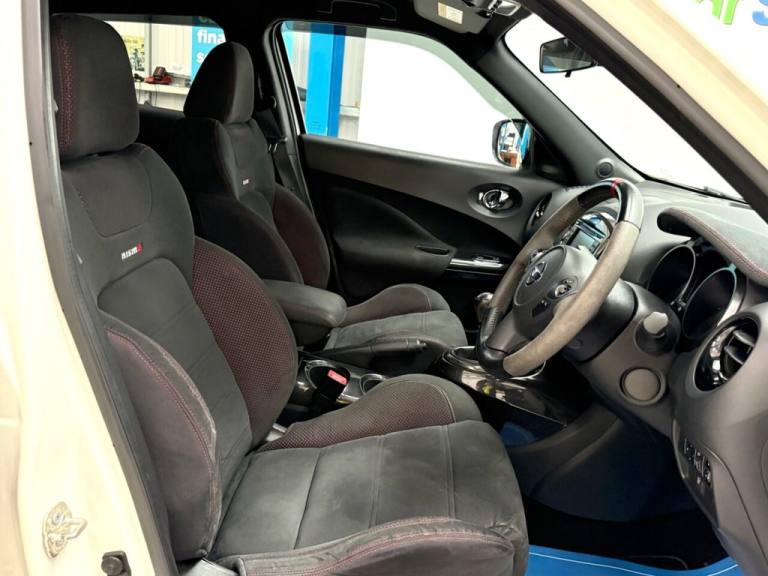 Sporty Storm White Nissan Juke NISMO RS with Great Service History & 218 BHP. Huge Spec & Lots of Model Specific Extras Including Heated Suede Sports Seats with NISMO Logo, Leather-Alcantara Steering Wheel, Aero Body Styling Kit, Upgrade 18" Alloy Wheels, Dark Privacy Glass, Nissan Connect Apple Carplay & Android Auto, SATNAV, Driving Modes, Driving Aids, Parking Camera, Cruise Control/ Speed Limiter, Climate Control, Bluetooth Phone & Music Streaming, Auto Lights/Wipers & 2 Keys to list a few ****** Bob Davies Car Sales is established as a trusted supplier of quality cars. Family business providing low mileage cars for over 40 years. High standards, great reputation & 5-star customer service. Best value in 100 mile radius. ***** Request a personal walk round on any car and well make sure youre happy before reserving, travelling or delivery. No pressure, no fuss, no fees. Secure with £100 refundable deposit.***** We deliver all over the UK to your door with our successful "Mouse to House" delivery. Wherever you live, we will bring your perfect car to you. Feel confident in the quality and condition of our vehicles, our warranty covers the UK.****** Best Rate Finance available to all, even for poor credit. No deposit needed just contact us and we will tailor to suit you. PX Very Welcome. " Quality Cars at Sensible Prices".Sporty NISMO RS Edition with 218 BHP, Touchscreen Satellite Navigation System, Suede Nismo Sports Seats - Heated Front, Reverse Camera, 18" Nismo Alloy Wheels, Bluetooth Media, Privacy Glass, Suede- Black with Red Stitching and NISMO Logo, Tech Pack, Telephone - Bluetooth Integration, Steering Wheel - Leather-Alcantara with Red Stitching and Centre Mark, Colour Reversing Camera, Automatic Climate Control with Pollen Filter, DAB and Internet Radio with 6 Speakers, NissanConnect, Storm White, AUX Socket for MP3 Player, USB Port, 18in NISMO Alloy Wheels, Badges - Front and Rear - NISMO RS, Black Bezel Combi Lights, Diffuser - Nismo, Front and Rear Red Brake Callipers, Nismo Aero Package, Electric Folding and Heated Door Mirrors, Front and Rear Electric Windows, NISMO Front Grille, Rear Privacy Glass, Sports Exhaust Finisher - Single, 2 Speed Wiper with Variable Intermittent, Seats - Heated Front, Steering Wheel Mounted Audio Controls, LED Signature Daytime Running Lights, Sports Suspension and Steering Set Up, ESP ABS EBD and Brake Assist, Engine Immobiliser, Upgraded Brakes, TPMS - Tyre Pressure Monitoring System, Rear Wiper with Intermittent, Traction Control, Passenger Airbag Cut-Off Switch, Tilt Adjustable Steering Wheel