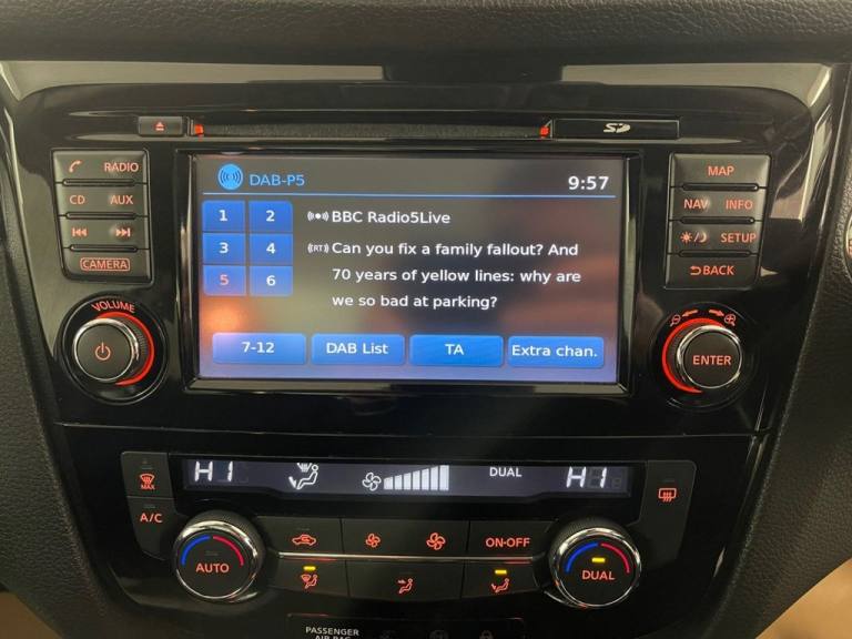 . ., 18in Alloy Wheels - Diamond Cut, 3 x 3-Point Rear Seatbelts with ELR, 5in High Definition Full Colour TFT Screen Combimeter, 6 Speakers, 60-40 Split Rear Folding Seats, AUX Socket for MP3 Player, Alarm, Automatic Folding Door Mirrors, Automatic Lights and Wipers, Black Honeycomb Front Grille, Bluetooth, Body-coloured Bumpers - Handles and Mirrors, CD Radio, Chrome Glass Surround, Cruise Control with Speed Limiter, Drive Computer, Driver Seat Height Adjustment, Driver-Passenger-Side and Curtain Airbags, Drivers Side One-touch and Anti-trap Window, Dual Zone Climate Control Air Conditioning, ESP ABS EBD and Brake Assist, Electric Speed-Sensitive Power Steering, Front Centre Console and Armrest, Front Fog Lamps with Chrome Ring, Front Seat Belt Height Adjustment, Front Seat Belts with Load Limiter and Pretensioners, Front and Rear Electric Windows, Head Restraints - 3 Rear, Height Adjustable Front Head Restraints, Hill Start Assist, ISOFIX Child Seat Anchoring Points, Immobiliser, Intelligent Key, Interior Ambient Lighting, LED Signature Daytime Running Lights, Leather Gear Knob, Leather Steering Wheel, Luggage Board System, Nissan Chassis Controls, Premium Pack, Puncture Repair Kit, Push Start-Stop Button, Rear Door Child Locks, Rear Privacy Glass, Rear Seat Armrest with 2 Cupholders, Remote Audio Control, Seats - Drivers Lumbar Support, Seats - Passengers Height Adjustment, Selectable Steering - Normal or Sport, Smart Vision Pack, TPMS - Tyre Pressure Monitoring System, Tech Pack, Tilt and Telescopic Adjustable Steering Wheel, e-PKB - Electric Parking Brake
