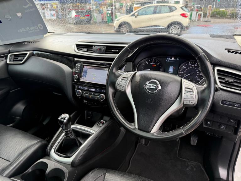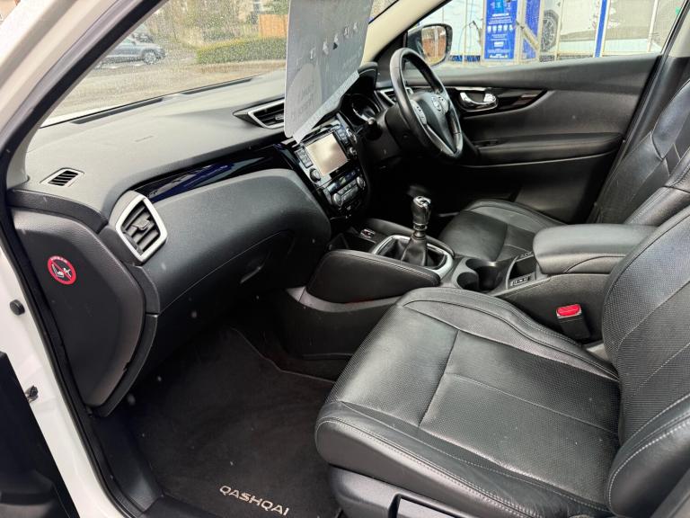 **SOLD WITH NEW MOT AND OIL SERVICE** **SAT NAV** **PAN ROOF** **LEATHER** **REVERSE CAM** This 2017 British Nissan Qashqai 1.5 dCi Tekna SUV with 149000 miles on the clock is the perfect family car, offering 5 spacious seats and 5 doors for easy access. Powered by a fuel-efficient diesel engine, this SUV is ULEZ compliant and comes with an MOT that expires on 22/06/2026, providing peace of mind for years to come. Boasting a sleek and stylish design, this Qashqai features 19in alloy wheels, automatic folding door mirrors, a black honeycomb front grille, and chrome glass surround. Whether you're running errands around town or embarking on a road trip, this Euro 6 (s/s) engine with 110 ps won't let you down. Don't miss out on this reliable and feature-packed SUV that's ready to take you on your next adventure