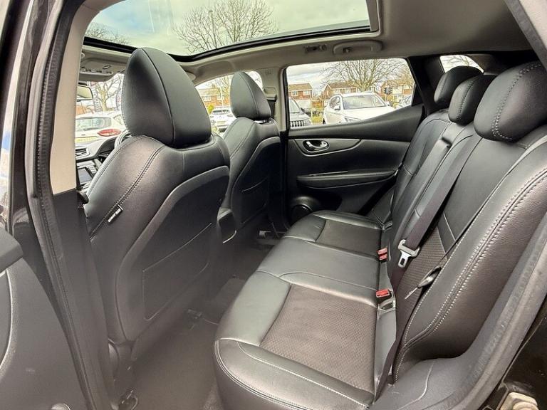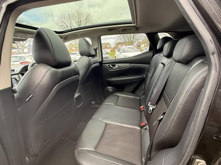FINANCE FROM 9.9% APR WE WILL NOT BE BEAT ON RATE!This stunning car is prepared to the highest standard set in Black with a contrasting part Black Heated leather interior. The car comes with service history, serviced recently at the following intervals, and will be serviced and Mot'd by ourselves. The car boasts the following spec; Front + Rear Park,19"" Alloys,rear Privacy,Keyless Entry,Bose Sonund,Panroof,2 Keys,Auto Lights and Wipers,Lane Assist,Sat Nav,Dab,Bluetooth,Half Black Leather,Cruise Control,Duel Climate,Heated seats,Finance calculator available on our website. Finance packages tailored to your needs, just ask one of our team to give you a quote. We offer hire purchase (HP) and PCP deals both at competitive rates. (+£149 Service support fee on all cars)Any car can be reserved with deposits from £100 subject to inspection. If upon your visit to our site, the car is not as described the deposit would be refunded in full immediately. We do price our cars as competitively as possible and because of this we sell cars very quickly. If you like the car chances are somebody else does too so don’t miss out and reserve now!We have chosen award-winning Autoguard Warranties as our extended warranty provider, as they offer comprehensive cover, with a variety of products to suit all your needs. Every car comes with a free 3-month standard warranty with a £300 claim limit. There is also the option to upgrade to a fully comprehensive premium with roadside assistance and breakdown 12-month warranty for £399, The extended warranty will cover you up to £1000 per claim. There is an additional fee of £100 for any 4x4 vehicles, over a 2.9l engine and electric cars.We are fully authorized and approved by AA cars and trading standards to give you peace of mind when purchasing through ourselves. Also please check out our 5 star reviews on google and auto trader. We were finalists in the new used car dealership of the year awards 2023, 2024, 2025..Glass Roof Pack,Part Leather - Graphite,Pearl Black, Advanced Drive Assist Display - 5in TFT Coloured Screen, AM-FM Radio and CD Player, AUX Socket, Bluetooth, Bose 8 Speaker Premium Audio System, DAB Digital Radio, Front 12v Power Sockets x2, NissanConnect Evo Touchscreen Navigation and Entertainment System, Shark Fin Antenna, Smartphone App Integration, USB Port, Cruise Control with Speed Limiter, Intelligent Around View Monitor, Intelligent Park Assist, Lane Departure Warning, Outside Temperature Sensor, Parking Sensor - Front, Rear Parking Sensors, Rear View Camera, Selectable Steering - Normal or Sport, TPMS - Tyre Pressure Monitoring System, Traffic Sign Recognition, Trip Computer, 19in Alloy Wheels, Body Coloured Door Mirrors, Body Coloured Handles, Chrome Glass Surround, Electric Auto-Folding Door Mirrors, Front and Rear Electric Windows, LED Pack, LED Turn Indicator on Door Mirrors, Matt Silver Roof Rails, Privacy Glass, Puncture Repair Kit, Rear Roof Spoiler, Adaptive Front Lighting System, Headlights - Automatic Levelling, Headlights - High Beam Assist, Headlights - LED, Intelligent Auto Headlight, LED Signature Daytime Running Lights, 3 Height Adjustable Rear Headrests, 60-40 Split Rear Folding Seats, Ambient Lighting Centre Console, Anti Dazzle Rear View Mirror, Auto Wipers, Boot Light, Carbon Graphite Dash Trim, Chrome Interior Door Handles, Daytime Running Lights Dip Function When Turn Signal Applied, Driver Seat Height Adjustment, Drivers Seat with Manual Lumbar Support, Dual Zone Climate Control Air Conditioning, Electrically Adjustable Drivers Seat, Executive Pack, Front and Rear Door Pockets with Drink Holders, Front Centre Console and Armrest, Heat Pack, Height Adjustable Front Head Restraints, Interior Ambient Lighting, Leather D Shaped Steering Wheel, Leather Gear Lever, Leather Knee Pad, Luggage Board System, Monoform Front Seats with Plastic Backboard, One Touch 4 x Auto Windows with Illuminated Switches, Parcel Shelf - Stow Function Under Luggage Board, Passengers Seat with Manual Lumbar Support, Pollen Filter, Seats - Passengers Height Adjustment, Start Push Button, Steering Wheel Mounted Audio Controls, Synthetic Leather Wrapped Door Handle with Contrasting Stitching, Tech Pack, Tilt and Telescopic Adjustable Steering Wheel, Electric Speed-Sensitive Power Steering, Nissan Chassis Controls, Underbody Vortex Generators, AutoHold Function - Stand Still Assist, Driver-Passenger-Side and Curtain Airbags, Electric Parking Brake, ESP ABS EBD and Brake Assist, Front and Rear Seatbelt Warning, Front Seat Belts with Load Limiter and Pretensioners, Height Adjustable Front Seatbelts, Hill Start Assist, Intelligent Emergency Braking, Intelligent Key, ISOFIX Child Seat Anchoring Points - Rear x2, Nissan Anti Theft System Immobiliser, Passenger Airbag Deactivation System, Rear Wiper with Reverse Link, Remote Central Locking, Safety Shield, Smart Vision Pack, Thatcham Category 1 Alarm