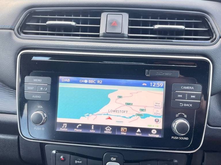 NISSAN LEAF 40kWh Tekna Hatchback 5dr Electric Auto (150 ps) Service History and 12 Months MOT 6 Months Blue Chip Warranty Road Side Assistance (Optional) Located at Lowestoft.17in Alloy Wheels, Auto Rain Sensing Wipers, BOSE Premium Audio System , Heated Seats & Steering Wheel, EV Connect Telematics System, 1 USB Port, 12V Socket, 17in Alloy Wheels, 6 Airbags, 6.6kW AC On Board Charger, ABS with EBD, AVM with Moving Object Detector, Alarm - Thatcham, Auto Hazard Lights, Auto Rain Sensing Wipers, Automatic Headlights - Dusk Sensor, BOSE Premium Audio System with 7 Speakers, Body Coloured Door Mirrors, Brake Assist, Door Handles - Chrome, E-Pedal, ESP - Electronic Stability Programme, EV Connect Telematics System, EVSE 6M or Mode 3 - 6M, Electric Folding Door Mirrors, Electric Parking Brake, Electric Speed-Sensitive Power Steering, Faster Heater, Follow Me Home Headlights, Forward Emergency Braking with Pedestrian Recognition, Front Fog Lights, Front Seat Back Pockets, Front and Rear Electric Windows, Gloss Black B-pillar, Heated Front and Rear Seats - Heated Steering Wheel, Hill Start Assist, I-Key and PES, ISOFIX on Rear, Integrated Turn Signals in Mirrors, Intelligent Auto Headlight with Full LED, Intelligent Cruise Control, Interior Rear View Mirror with Auto Dimming, Leather Steering Wheel, Manually Adjustable Drivers Seat - Slide - Recline and Lifter, Manually Adjustable Passenger Seat - Slide and Recline, Nissan Connect 2 Kai2 Navi with DAB and Apple Carplay - Android Auto, Nissan Connect EV, Nissan Connect EVO 7in Touchscreen Navigation and Entertainment System, Parking Sensors 4x Front - 4x Back, ProPILOT, Quick Charger Capacity, Rear Lamp Styled LED, Rear Privacy Glass, Speed Limiter, Steering Wheel - Heated, Tilt Adjustable Steering Wheel, Trip Computer
