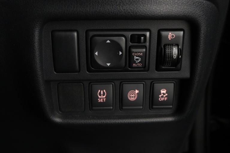 ..Around View Monitor, Blind spot monitoring, Bluetooth system, Colour rear view camera, Cruise control + speed limiter, Door/boot open warning light, Electric speed sensitive power steering, Exterior temperature gauge, Lane departure warning system, Low fuel level warning light, Moving object detection, Nissan connect sat nav system, Push button starter, Service interval indicator, Trip computer, 6 speakers, Aux input, Bose personal sound system, DAB Digital radio, Steering wheel mounted audio controls, Stereo radio/CD player and MP3 facility, USB port, Automatic headlights, Body colour bumpers, Body colour door handles, Body colour door mirrors, Dark chrome grille, Dusk sensor, Electric door mirrors, Electric folding door mirrors, Electric front/rear windows, Heated door mirrors, Heated rear windscreen, LED daytime running lights, LED front fog lights, LED indicators in door mirrors, Privacy glass, Rain sensor windscreen wipers, Rear wiper, 12V socket, 3 height adjustable rear headrests, 60/40 split folding rear seat, Climate control, Driver/passenger reading lights, Driver/passenger sunvisors and vanity mirrors, Front armrest, Front cupholders x 2, Front door pockets with bottle holders, Front head restraints, Front seat belt pre-tensioners with load limiters, Gear shift indicator, Glovebox, Heated front seats, Height adjustable driver's seat, Interior courtesy lights, Internal chrome door handles, Isofix child seat preparation, Leather steering wheel and gear knob, Leather upholstery, Luggage area under floor storage box, Map reading lamp, Passenger seat back pocket, Pollen filter, Rear tonneau cover integrated into tailgate, Sports seats, Steering wheel rake adjustment, ABS + EBD + EBA, Child locks on rear doors, Driver and passenger airbags, Driver and passenger side airbags, ESP + traction control, Front and rear curtain airbags, Height adjustable front seatbelts, Passenger airbag deactivate switch, Three 3 point rear seatbelts, Tyre pressure monitoring system, VDC Dynamic Vehicle Control, Warning triangle and first aid kit, Alarm, Immobiliser, Intelligent Key, Remote central locking, 17'' Urban alloy wheels, Tyre repair kit