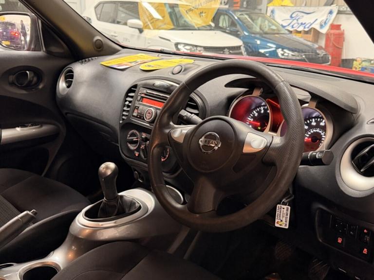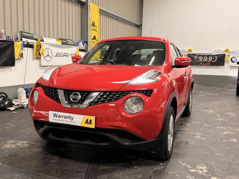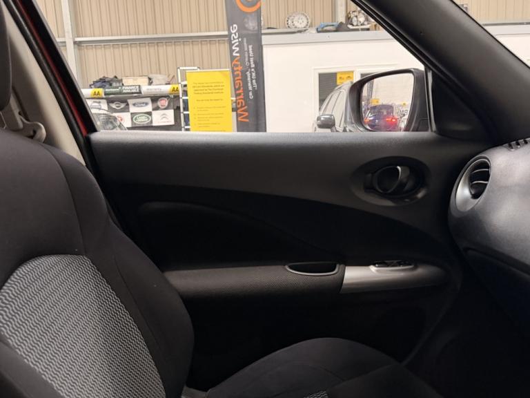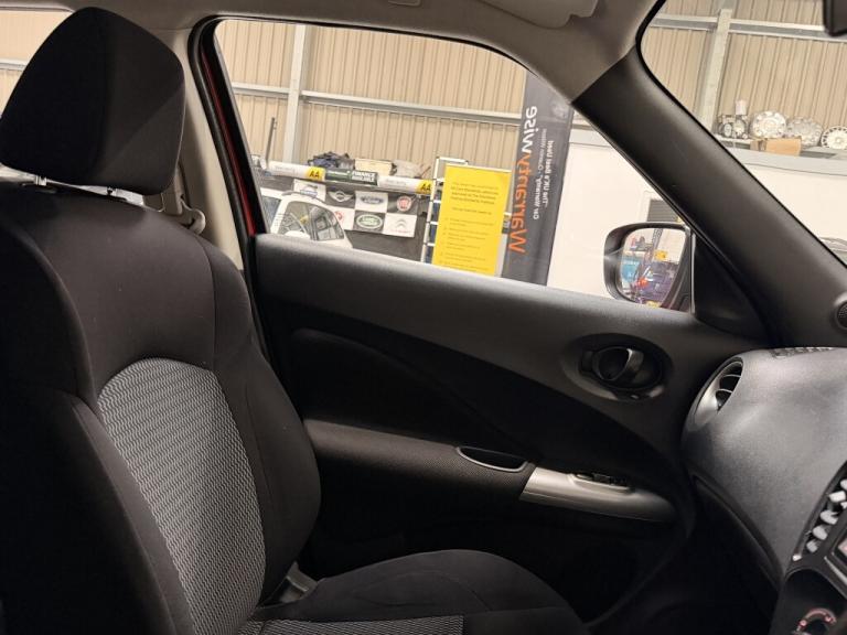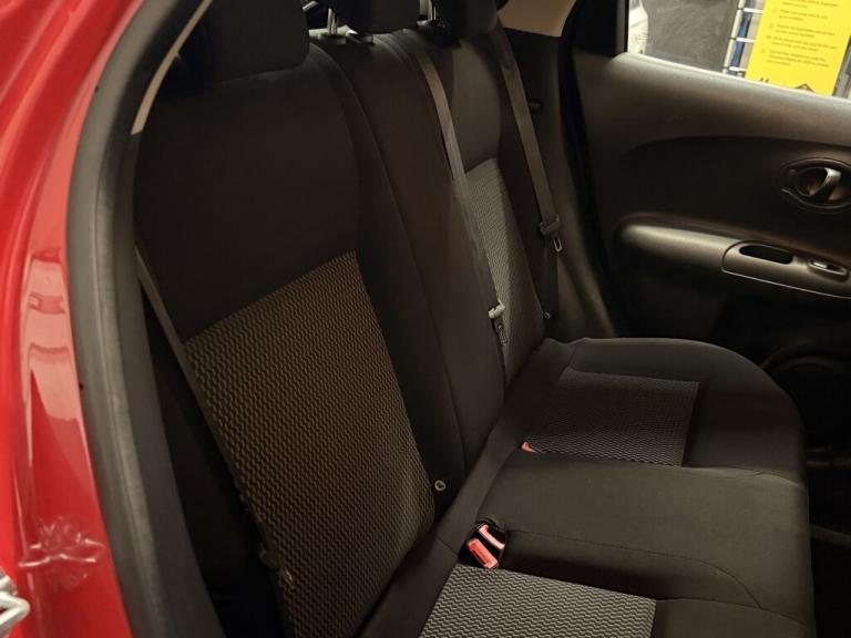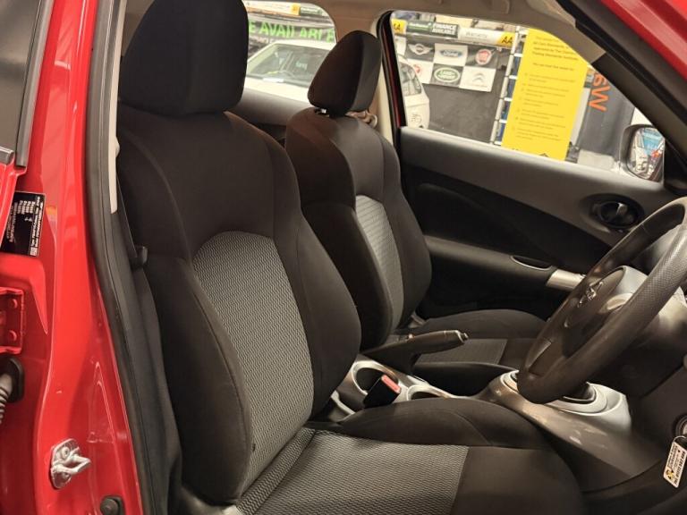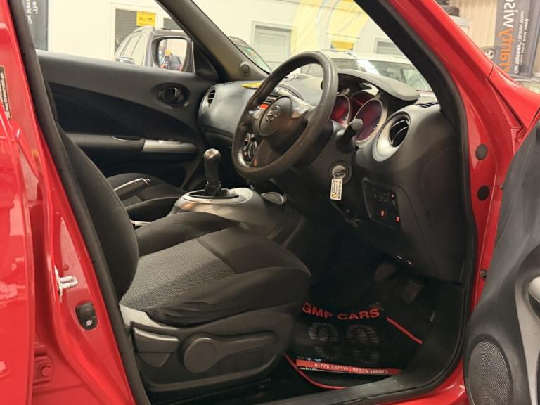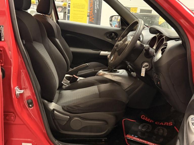 63000 miles. Nissan Juke 1.6 visia 5 dr hatch 94-bhp petrol 2018 euro 6 1 previous owner from new with 63000 miles - new mot Feb 2027 no advisories great specification that includes alloy wheels air conditioning electric windows central locking leather steering wheel split folding rear seats with isofix adjustable front seats glovebox cooling cup holders front and rear- front and rear headrests trip computer usb and aux connectivity body colour bumpers and mirrors electric heated door mirrors chrome exhaust finish led daytime running lights front fog lights vanity mirrors interior map reading lights child locks tyre monitors great tyres all round alarm immobiliser system just been fully valeted and exterior polished like new drives excellent 5 star warranty drive away insurance available uk delivery service available Preston train station pick up service available on request indoor viewing by appointment only- Watsapp for a walk round video check out our website for more pictures and more details more cars available low rate finance deals available all card payments taken Gmp cars Preston pr3 PAS, Rear wiper, Service indicator, Trip computer, Windscreen heating, Auxiliary input socket, OEM sound system, Steering wheel rake adjustment, LED Indicator lights, , 3x3 point rear seat belts, ABS, Curtain airbags, Drivers airbag, ESP, Passenger airbag, Rear airbags, Side airbags, Traction control, Tyre pressure monitor, Tyre repair kit.