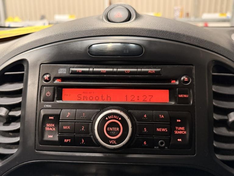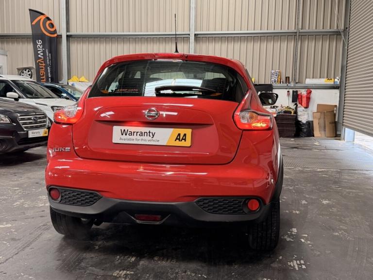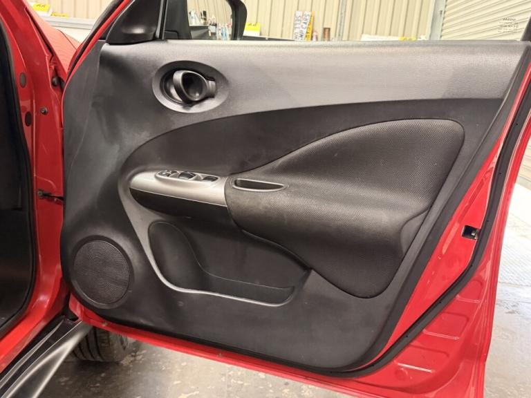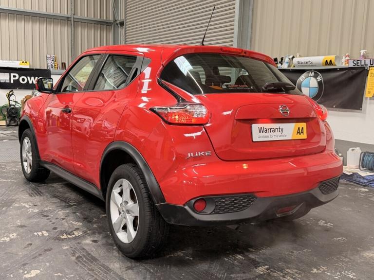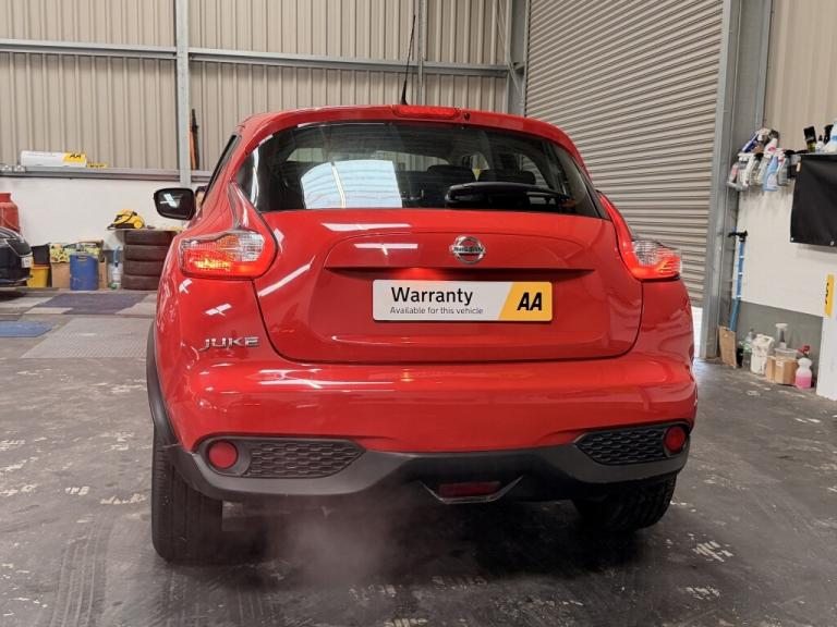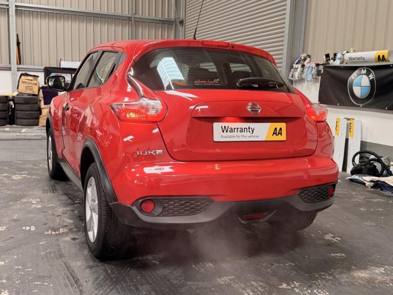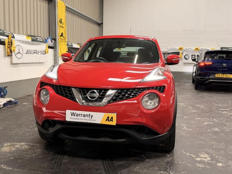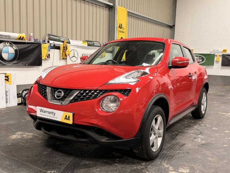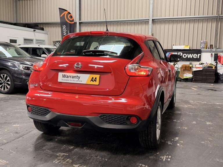 63000 miles. Nissan Juke 1.6 visia 5 dr hatch 94-bhp petrol 2018 euro 6 1 previous owner from new with 63000 miles - new mot Feb 2027 no advisories great specification that includes alloy wheels air conditioning electric windows central locking leather steering wheel split folding rear seats with isofix adjustable front seats glovebox cooling cup holders front and rear- front and rear headrests trip computer usb and aux connectivity body colour bumpers and mirrors electric heated door mirrors chrome exhaust finish led daytime running lights front fog lights vanity mirrors interior map reading lights child locks tyre monitors great tyres all round alarm immobiliser system just been fully valeted and exterior polished like new drives excellent 5 star warranty drive away insurance available uk delivery service available Preston train station pick up service available on request indoor viewing by appointment only- Watsapp for a walk round video check out our website for more pictures and more details more cars available low rate finance deals available all card payments taken Gmp cars Preston pr3 PAS, Rear wiper, Service indicator, Trip computer, Windscreen heating, Auxiliary input socket, OEM sound system, Steering wheel rake adjustment, LED Indicator lights, , 3x3 point rear seat belts, ABS, Curtain airbags, Drivers airbag, ESP, Passenger airbag, Rear airbags, Side airbags, Traction control, Tyre pressure monitor, Tyre repair kit.