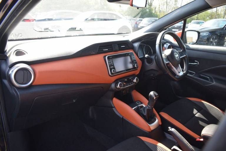 We offer Click & Collect and Click & Deliver anywhere in the UK. You can reserve this vehicle for just £99, this is fully refundable if you do not purchase the car. Previous Keeper(s) Guidance This car may have been previously owned by a car leasing company and may have had more than one driver. For specific details please speak to a member of our team. .Automatic Headlights, 17in Alloy Wheels - Personalised with In, Nissan Connect 7in Touchscreen Navigatio, Rear Parking Sensors, Rain Sensing Windscreen Wipers, 12V Socket - Front, 17in Alloy Wheels - Personalised with Inserts, 2 x Front and 1 x Rear Cup Holders, 60-40 Split Folding Rear Seats, ABS with EBD and Brake Assist, AM-FM Radio and CD Player, AUX-In Socket, Advanced Drive-assist Display, Air Conditioning - Automatic, Antenna - 300mm, Audio System with MP3, Auto Hazard Lights, Automatic Headlights, BOSE Personal Audio Pack, BOSE Personal Badge, Bluetooth, Body Coloured Door Mirrors, Body Coloured Front Door Handles, Bumpers - Body Coloured, Chrome Interior Door Handles, Comfort Pack, Concealed Rear Door Handles, Crash Warning, Cruise Control, DAB Radio, Door Entry Guards, Driver and Passenger Sun Visor with Vanity Mirror, Driver-Passenger-Side and Curtain Airbags, ESP - Electronic Stability Programme, Electric Folding-Heated Door Mirrors with LED Turn Indicators, Engine Immobiliser, Floor Mats, Front Armrest, Front Console Storage, Front Electric Windows, Front Fog Lights, Front Passenger Seatback Pockets, Front and Rear Door Pockets, Front and Rear Seatbelt Warning, Handbrake - Leather Covered, Headlights - High Beam Assist, Headlights - LED, Height Adjustable Driver Seat, Height Adjustable Front Headrests, Height Adjustable Front and Rear Seatbelts with Pre-tensioner and Load Limiter, Height and Telescopic Adjustable Steering Wheel, High Mounted Rear Brake Light, Hill Start Assist, ISOFIX Child Seat Anchoring Points, Intelligent Emergency Braking with Pedestrian Recognition, Intelligent Lane Intervention, Intelligent Ride Control, Intelligent Trace Control, Interior Personalisation - Energy Orange, Jacknife Key Type x1, Kicking Plates, LED Ambient Lighting in Front Console Storage, LED Signature Daytime Running Lights, Lane Departure Warning, Leather Steering Wheel, Leather Wrapped Gear Knob with Silver Decoration, Luggage Room Lighting, Lumbar Support, Map Lamp and Power Window Switch Illumination, Nissan Connect 7in Touchscreen Navigation and Entertainment System, Nissan Intelligent Key with Engine Start Button, Outside Temperature Gauge, Parcel Shelf, Passenger Airbag Deactivation System, Power Assisted Steering, Rain Sensing Windscreen Wipers, Rear Parking Sensors, Rear Privacy Glass, Rear Roof Spoiler, Rear View Camera, Rear Wiper, Reclining Front Seats, Remote Central Locking, Satin Silver Decoration on Gear Knob - Steering Wheel and Air Ven