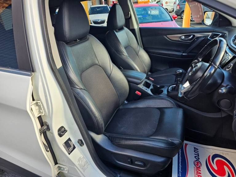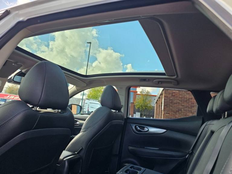 Comes with a new 12m, advisory free MOT and 6m Warranty!.Storm White, Glass Roof Pack, 19in Alloy Wheels, 3 Height Adjustable Rear Headrests, 60-40 Split Rear Folding Seats, AM-FM Radio and CD Player, AUX Socket, Adaptive Front Lighting System, Advanced Drive Assist Display - 5in TFT Coloured Screen, Ambient Lighting Centre Console, Anti Dazzle Rear View Mirror, Auto Wipers, AutoHold Function - Stand Still Assist, Bluetooth, Body Coloured Door Mirrors, Body Coloured Handles, Boot Light, Bose 8 Speaker Premium Audio System, Carbon Graphite Dash Trim, Chrome Glass Surround, Chrome Interior Door Handles, Cruise Control with Speed Limiter, DAB Digital Radio, Daytime Running Lights Dip Function When Turn Signal Applied, Driver Seat Height Adjustment, Driver-Passenger-Side and Curtain Airbags, Drivers Seat with Manual Lumbar Support, Dual Zone Climate Control Air Conditioning, ESP ABS EBD and Brake Assist, Electric Auto-Folding Door Mirrors, Electric Parking Brake, Electric Speed-Sensitive Power Steering, Electrically Adjustable Drivers Seat, Executive Pack, Front 12v Power Sockets x2, Front Centre Console and Armrest, Front Seat Belts with Load Limiter and Pretensioners, Front and Rear Door Pockets with Drink Holders, Front and Rear Electric Windows, Front and Rear Seatbelt Warning, Headlights - Automatic Levelling, Headlights - High Beam Assist, Headlights - LED, Heat Pack, Height Adjustable Front Head Restraints, Height Adjustable Front Seatbelts, Hill Start Assist, ISOFIX Child Seat Anchoring Points - Rear x2, Intelligent Around View Monitor, Intelligent Auto Headlight, Intelligent Emergency Braking, Intelligent Key, Intelligent Park Assist, Interior Ambient Lighting, LED Pack, LED Signature Daytime Running Lights, LED Turn Indicator on Door Mirrors, Lane Departure Warning, Leather D Shaped Steering Wheel, Leather Gear Lever, Leather Knee Pad, Luggage Board System, Matt Silver Roof Rails, Monoform Front Seats with Plastic Backboard, Nissan Anti Theft System Immobiliser, Nissan Chassis Controls, NissanConnect Evo Touchscreen Navigation and Entertainment System, One Touch 4 x Auto Windows with Illuminated Switches, Outside Temperature Sensor, Parcel Shelf - Stow Function Under Luggage Board, Parking Sensor - Front, Passenger Airbag Deactivation System, Passengers Seat with Manual Lumbar Support, Pollen Filter, Privacy Glass, Puncture Repair Kit, Rear Parking Sensors, Rear Roof Spoiler, Rear View Camera, Rear Wiper with Reverse Link, Remote Central Locking, Safety Shield, Seats - Passengers Height Adjustment, Selecta