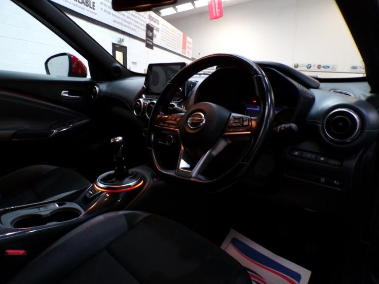 51911 miles. This 2019 Nissan Juke DIG-T Tekna is presented with a full 12 months MOT for your peace of mind. This stylish Tekna trim Juke is equipped with a 1.0 litre petrol engine and meets Euro 6 emissions standards. It has two keys and a five stamp service history. The vehicle comes with a comprehensive Drive Assist Pack, featuring adaptive cruise control for effortless journeys. Inside, you'll find automatic climate control, and connectivity options including Bluetooth, USB, Aux, and a 12V socket, alongside Android Auto and Apple CarPlay integration. Comfort is further enhanced with both front and rear heated seats. This Nissan Juke DIG-T Tekna offers an impressive fuel economy of 46 miles per gallon, demonstrating its efficiency compared to similar vehicles. Its low CO2 emissions also contribute to its economical running costs. It will come with a three month Warranty which includes full roadside assist breakdown cover, provided by a trading standard approved company. For full details of this vehicle and to request a walk around video please give one of our dedicated sales team a call on 0161 799 5565 PLEASE NOTE THAT CURRENTLY NOT ALL CARS ON SITE HAVE BEEN FULLY PREPARED TO SHOWROOM STANDARD. Therefore, appointments are preferred to give us a chance to check the car over prior to your visit. This is not compulsory and should you wish to visit the site without an appointment please just bear in mind the vehicles may still require all or some of their prep work. Thank you in anticipation of your patience. ALL CARS COME WITH AT LEAST A TEN MONTH INDEPENDANT MOT WITH ALL ADVISORIES COMPLETED PRIOR TO COLLECTION. ALL CARS HAVE AN OIL AND FILTER SERVICE (IF ONE IS DUE) PRIOR TO COLLECTION ALL OUR CARS ARE HPI CLEAR PART EXCHANGE WELCOME, VERY COMPETIVE VALUES OFFERED FINANCE OPTIONS ARE AVAILABLE ,GREAT RATES OFFERED AND WE ARE FULLY FCA REGULATED, WHY NOT LET US GIVE YOU A QUOTE? CARS CAN BE RESERVED FOR UP TO 5 DAYS FOR £100. THE RESERVATION FEE IS FULLY REFUNDABLE , NO QUESTIONS ASKED OUR CARS ARE PRICE CHECKED DAILY TO ENSURE GREAT PRICES. Adaptive cruise control, Automated High-beam assist, Bluetooth connection, Front parking sensor, Front view camera, Heated front seat, Navigation system, PAS, Park assist camera, Rear parking sensor, Rear wiper, Reverse parking aid, Steering wheel mounted controls, Surround view, Traffic sign recognition, Trip computer, Windscreen heating, 3rd party sound system, Audio remote control, Auxiliary