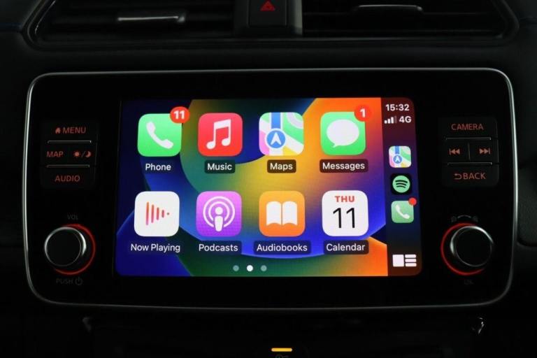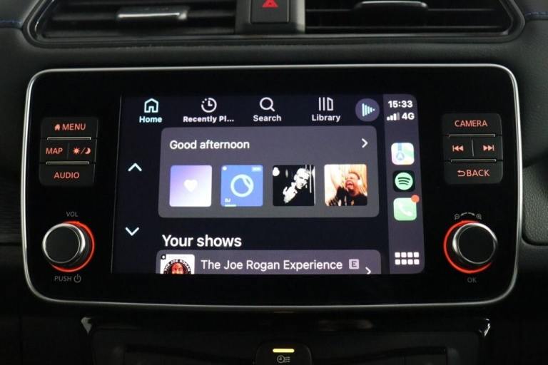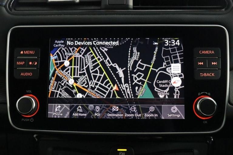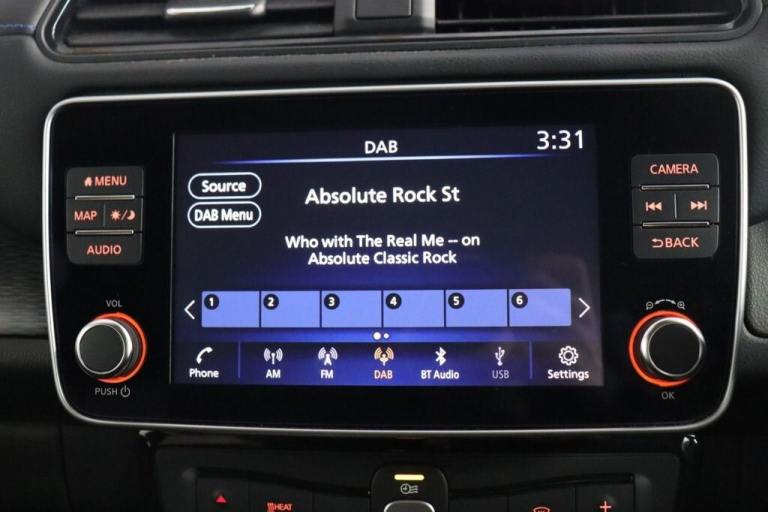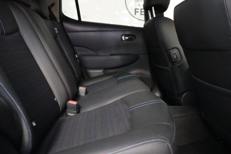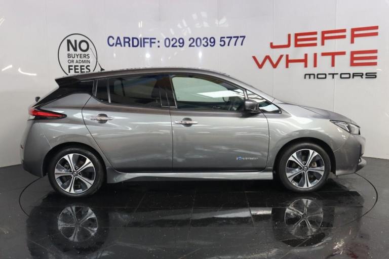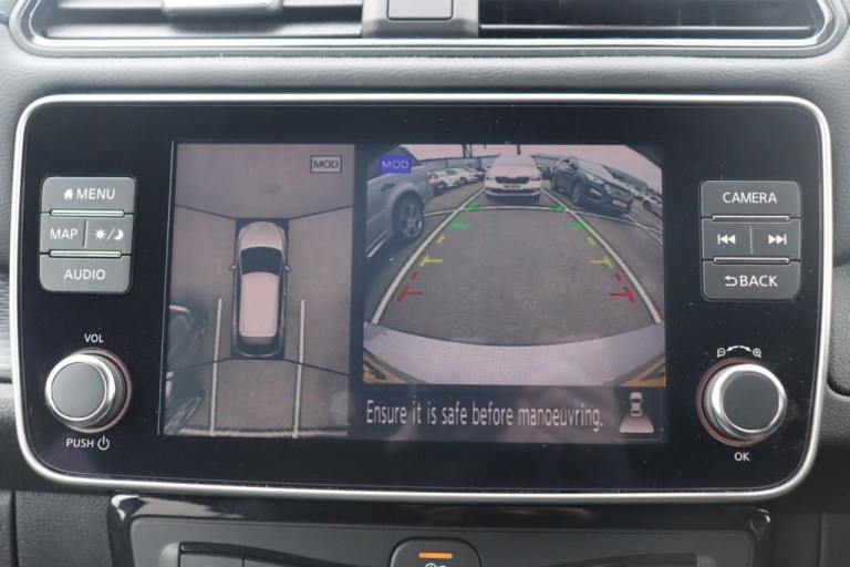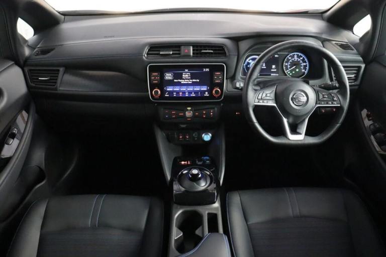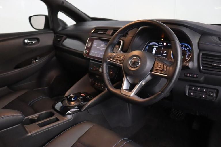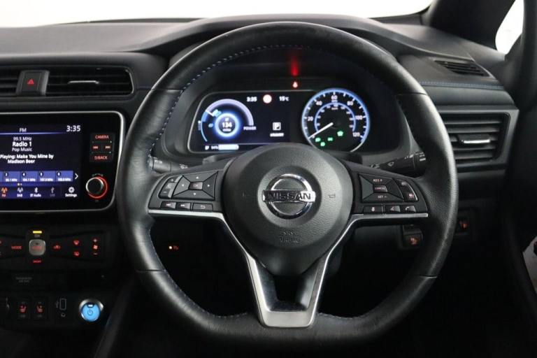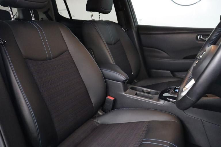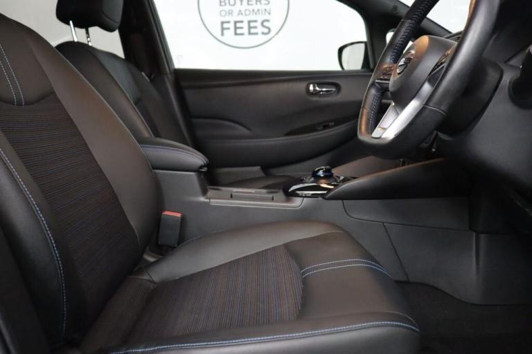 NO BUYERS FEES - Service history, spare key supplied SAT NAV HEATED SEATS.7" Combimeter, Apple car play/Android Auto, Blind spot warning, E Pedal, Intelligent Cruise control (ICC), Intelligent lane intervention, Lane departure warning system, Nissan connect EV 8" touch screen navigation and entertainment system, Push button starter, Rear cross traffic alert, Rear view camera, Speed limiter, Speed sensitive power steering, Telematics system, Trip computer, Voice control system, Deadlock, Immobiliser, Nissan i-key, Remote central locking, Thatcham Cat.1 alarm, 6.6 kw On-board charger, 6.6 kW onboard charger, EVSE charging cable, Heat pack - LEAF, Tech Pack - Leaf, 3 point front seatbelts with pre-tensioners, 3x3 point rear seatbelts, ABS with EBD and brake assist, Curtain airbags, Driver and passenger airbags, Front seatbelt pretensioners + load limiters, Height adjustable front seatbelts, Hill start assist, Intelligent emergency braking with pedestrian recognition, Intelligent trace control, Seatbelt reminder for driver and front passenger, Side airbags, Traction control, Tyre pressure monitoring system, VDC Dynamic Vehicle Control, 6 speakers, AM/FM/DAB audio system, Aux-in socket, Remote audio control, Two rear USB sockets, USB port, 60/40 split folding rear seat, Automatic air conditioning with timer and heater, Front centre console and armrest, Front head restraints, Front seatback pocket, Heat pump system with remote control, Height adjustable driver seat, Isofix child seat anchor points, Leather D shaped steering wheel, Manual adjust driver/passenger seats, PTC (Positive Temp Co-efficent) heater, Quick charge port, Rear assist grips, Rear head restraints, Rear heater duct, Synthetic leather/cloth upholstery, Tilt adjustable steering wheel, Anti dazzle rear view mirror, Auto dimming rear view mirror, Automatic activation of hazard warning lights, Automatic rain sensing wipers, Body coloured door mirrors with integrated LED indicators, Chrome door handles, Door mirrors with turn signal and puddle lamps, Electric front/rear windows, Electrically adjustable and folding door mirrors, Follow me home headlights, Gloss black finish B pillar, High beam assist, Illuminated charge port, Intelligent auto headlights, LED signature daytime running lights, LED tail light signature, Metallic blue rear bumper accent, Rear privacy glass, 17" Alloy wheels