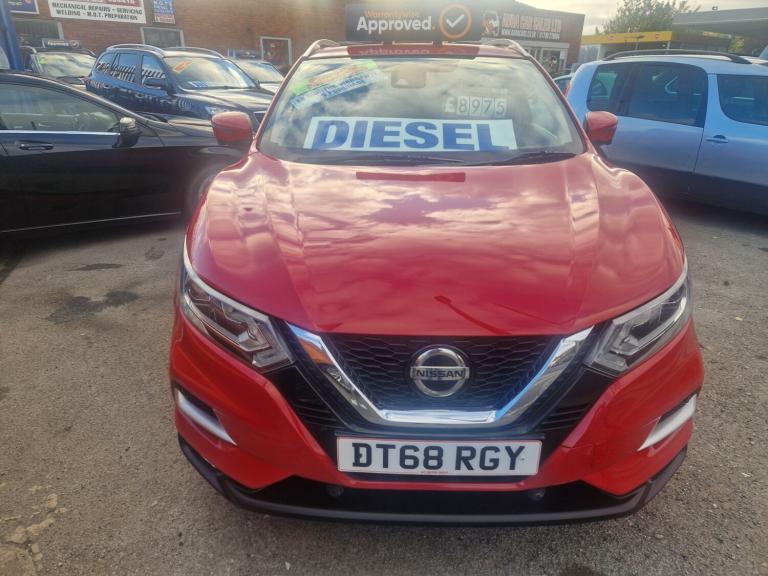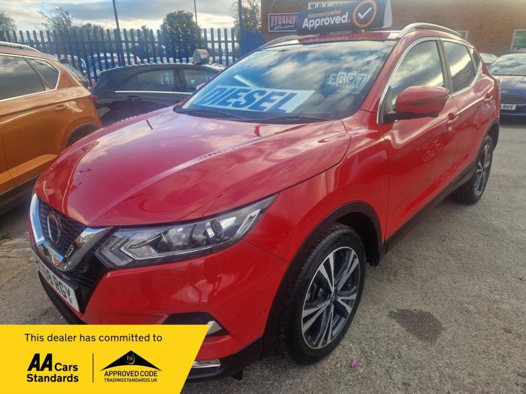 Aura Cars are excited to offer a 2019 NISSAN QASHQAI, perfectly suited for families with young children. This vehicle is powered by a Diesel 1461cc engine and is finished in red colour. Comes with excellent service history with cambelt changed at 65k in 2024. The QASHQAI boasts a range of features that make it an ideal choice for families, including a 360 reversing camera, sat nav, heated seats, diamond cut wheels, keyless start and go, and dual climate control. Additionally, the vehicle is equipped with lane departure control, providing added safety and peace of mind.The QASHQAI is in excellent condition throughout, having been directly part-exchanged from a main Nissan dealership. As a reputable dealership, we are both AA and Trading Standards approved, ensuring that all our vehicles meet the highest standards. This vehicle comes with a 12-month main dealership-style warranty, as well as 12 months of AA roadside assistance, completely free of charge.We also offer full finance facilities, making it easier for you to drive away in your new vehicle. Our team is committed to providing a professional and engaging service, ensuring that you find the perfect car for your family's needs. With its impressive features and excellent condition, this 2019 NISSAN QASHQAI is an excellent choice for families looking for a reliable and practical vehicle.