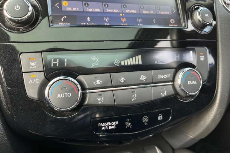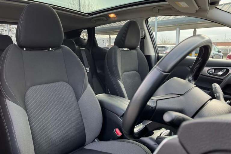 Advanced drive assist display 5'' TFT coloured screen, Android Auto, Apple CarPlay preparation, Bluetooth connectivity, Electric speed sensitive power steering, Front parking sensors, Intelligent around view monitor, Intelligent parking assist, Lane departure warning system, Nissan connect evo 7 touchscreen navigation and entertainment system, Normal or sport selectable steering, Outside temperature sensor, Push button starter, Rear parking sensors, Rear view camera, Service interval indicator, Smartphone integration, Stop/start system, Tomtom connected services, Traffic sign recognition, Trip computer, Voice control system, Anti dazzle rear view mirror, Auto wipers, Body colour bumpers, Body coloured door handles, Body coloured door mirrors, Chrome window surround, Daytime running lights dip function when turn signal applied, Electric folding door mirrors, Electric front and rear windows with one touch illuminated window controls, Electric front/rear windows, Electrically adjustable door mirrors, Front fog lights, Halogen headlights, Heated door mirrors, High beam assist, Intelligent auto headlights, LED indicators in door mirrors, Matt silver roof rails, One touch 4x auto windows with illuminated switches, Privacy glass, Rear roof spoiler, Rear wiper with reverse link, Shark fin antenna, Signature LED daytime running lights, Underbody vortex generators, 2 X front 12v power sockets, 3 height adjustable rear headrests, 60/40 split folding rear seat, Ambient lighting, Ambient
