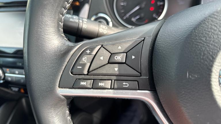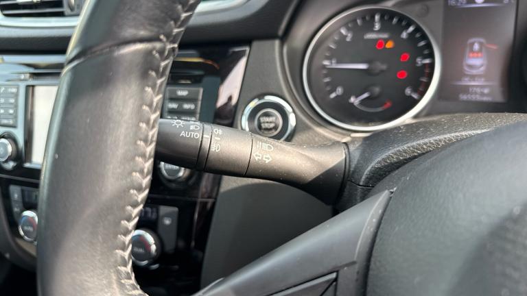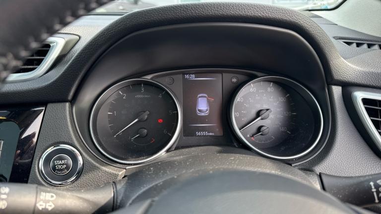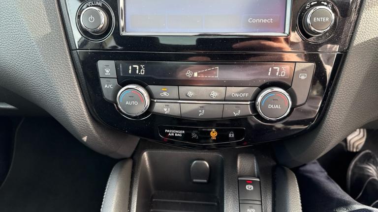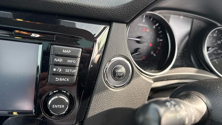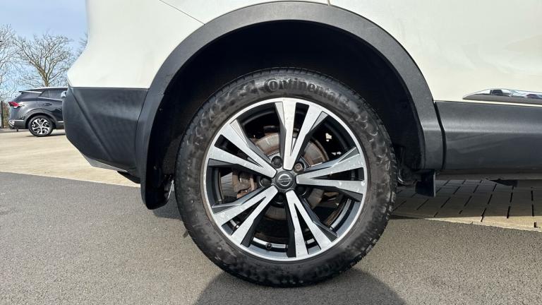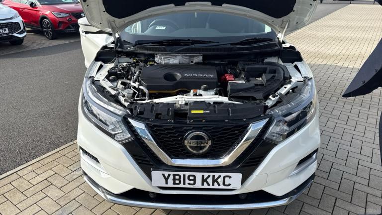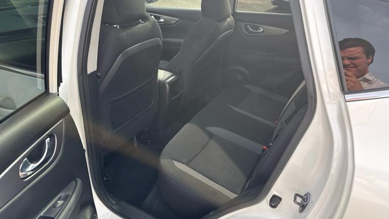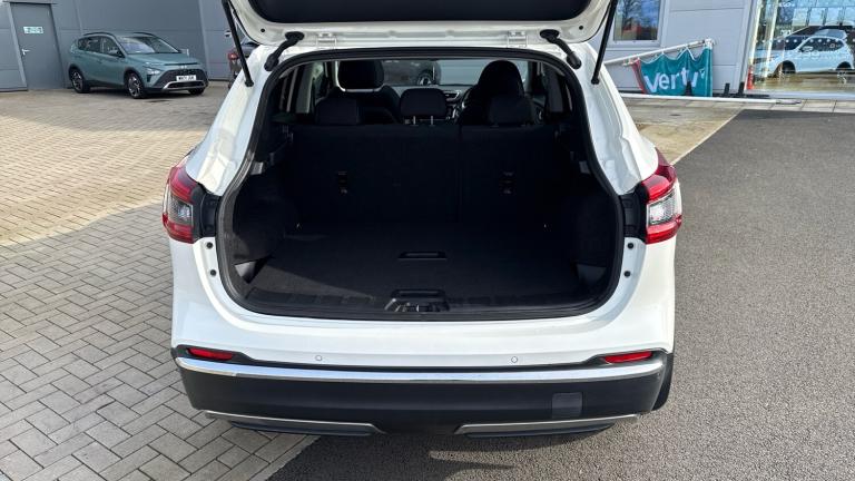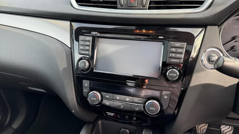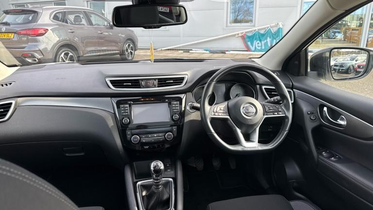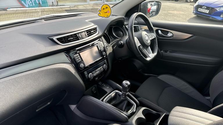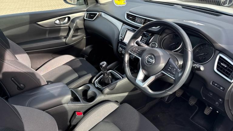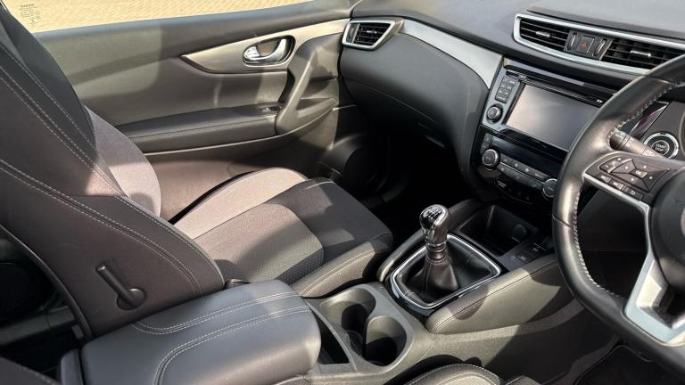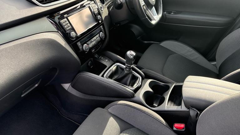 .Privacy glass, Electronic parking brake, Voice control system, Rear view camera, Push button starter, Trip computer, Interior mirror with auto anti dazzle, Glossy black dash trim, Diesel particulate filter, 6 speakers, Body colour bumpers, Front fog lights, Pollen filter, Leather interior door handles, Ambient lighting in centre console, Safety shield plus pack - Qashqai, Height adjustable front seatbelts, 60/40 split folding rear seat, Remote central locking, Tyre puncture repair kit