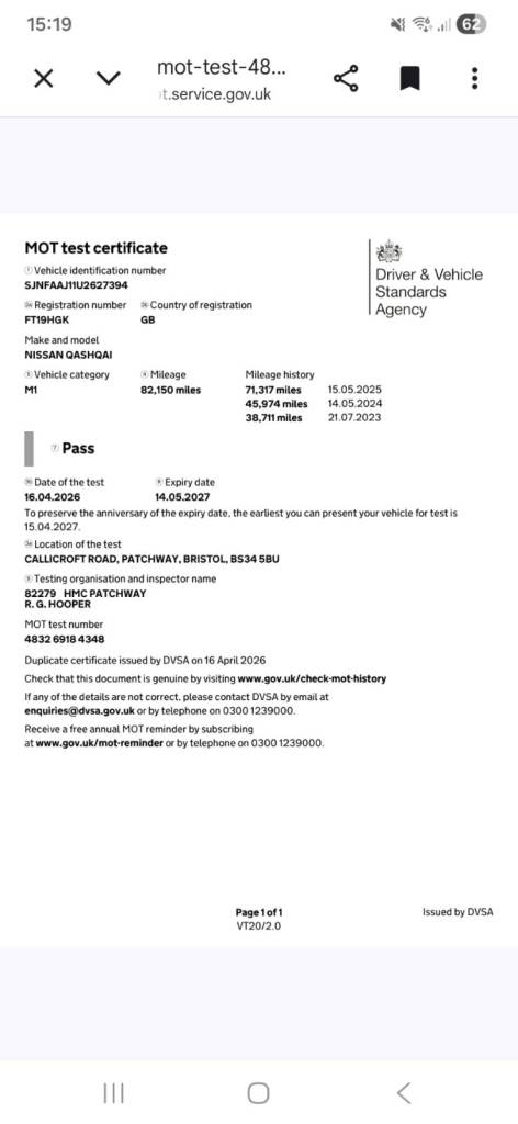 2019 Nissan Qashqai Automatic 1.5 dCi N-Connecta. Keyless entry , start/stop. New Shape ULEZ Compliant , Good condition and clearly well looked after. 821600 miles with full service history (full service just been done)and 12 months MOT, ULEZ compliant, economical to run, and ideal as a family car or comfortable daily driver. Drives exactly as it should with no issues. Specification includes: Satellite Navigation Reverse Camera 360 Around View Camera Climate Control Air Conditioning Cruise Control Electric Handbrake ,Phone Connectivity (Bluetooth) Front & Rear Parking Sensors Daytime Running Lights Electric Windows Electric Mirrors Spacious, reliable, and very practical with a high driving position and excellent visibility. 4 Goodyear all season tyres.Cat S. One key.Any inspection and test drive welcome.