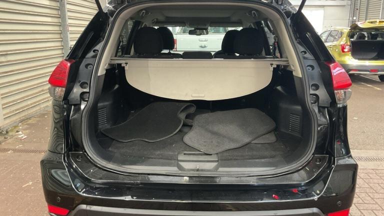 3 point seatbelts on all seats, 6 airbags - Driver, front passenger, curtain and side airbags, Child locks on rear doors, Seatbelt warning, Tyre pressure monitoring system, Immobiliser, Remote central locking, Thatcham Category 1 alarm, Anti-lock brake system, Electric parking brake, Electronic Brakeforce Distribution + Brake Assist, Electronic Stability Programme + traction control, Intelligent emergency braking with pedestrian recognition, Nissan chassis control (intelligent ride control, intelligent trace control, intelligent engine brake), Anti dazzle rear view mirror, Body colour door mirrors, Electric folding door mirrors, Electric heated door mirrors, Automatic rain sensing wipers, Front and rear electric windows, Rear privacy glass, Black honeycomb front grille, Chrome door handles, Chrome window surround, Panoramic sunroof with one touch shade, Rod antenna, Shark fin roof aerial, Solid paint, Automatic headlights, Front fog lights, Halogen headlights, High beam assist, LED daytime running lights, 3 rear headrests, 60/40 split rear bench seat, Driver's manual adjustable lumbar support, Height adjustable front headrests, Isofix child seat attachment, Individual rear reading lights, Centre console storage box/armrest, Cloth upholstery, Configurable luggage board system, Front and rear door pockets with bottle holders, Front cupholders, Front/rear armrests, Leather D shaped steering wheel, Leather steering wheel and gear knob, Tilt/telescopic adjustable steering wheel, Dual zone climate control, Pollen filter, Cruise control + speed limiter, Front and rear parking sensors, Intelligent around view monitor, Lane departure warning system, Power assisted steering, Stand still assist auto hold function, Traffic sign recognition, 5"" TFT driver information centre, Nissan connect evo 7"" touchscreen navigation and entertainment system, Trip computer, Bluetooth phone integration system, 6 speakers, DAB Digital radio, Radio/CD, Steering wheel mounted audio controls, USB/aux input socket, 17"" Alloy wheels, Full size spare wheel