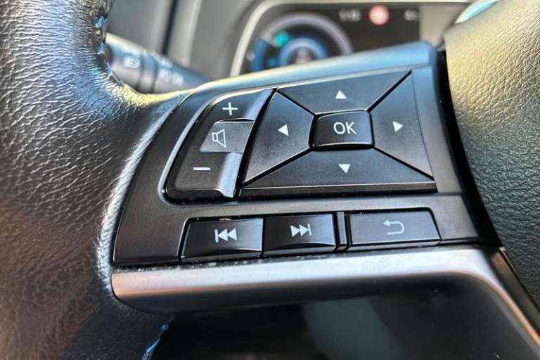 Driver and passenger airbags, Immobiliser, Leather steering wheel, Rain sensor, Rear head restraints, Rear wiper, Remote central locking, Traction control, Trip computer, Height adjustable front seatbelts, Deadlock, 6 speakers, Rear heater duct, Side airbags, 17 Alloy wheels, 3 point front seatbelts with pre-tensioners, Speed sensitive power steering, Push button starter, Chrome door handles, Automatic dimming rear view mirror, VDC Dynamic Vehicle Control, Front head restraints, Voice control system, Electric front/rear windows, Front seatback pockets, Rear privacy glass, Automatic activation of hazard warning lights, Curtain airbags, Tyre pressure monitoring system, Thatcham Category 1 alarm, PTC (Positive Temp Co-efficent) heater, Automatic rain sensing wipers, Hill start assist, Front seatbelt pretensioners + load limiters, Manual adjust driver/passenger seats, 3x3 point rear seatbelts, Follow me home headlights, Lane departure warning system, 60/40 split folding rear seat, Seatbelt reminder for driver and front passenger, 12V socket, USB port, Speed limiter, Telematics system, High beam assist, Body colour mirror caps, Rear assist grips, Aux-in socket, Electrically adjustable and folding door mirrors, Intelligent Cruise control (ICC), Synthetic leather/cloth upholstery, EVSE charging cable, Gloss black finish B pillar, Rear cross traffic alert, Quick charge port, Heat pump, 3 seat bench in 2nd row, Apple car play/Android Auto, Shark fin antenna, Intelligent emergency braking