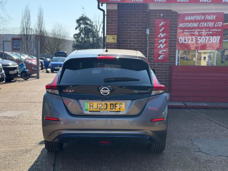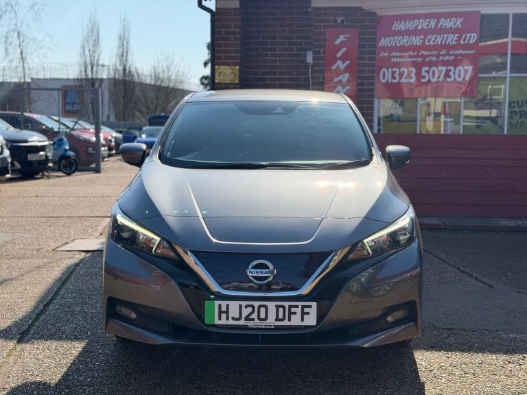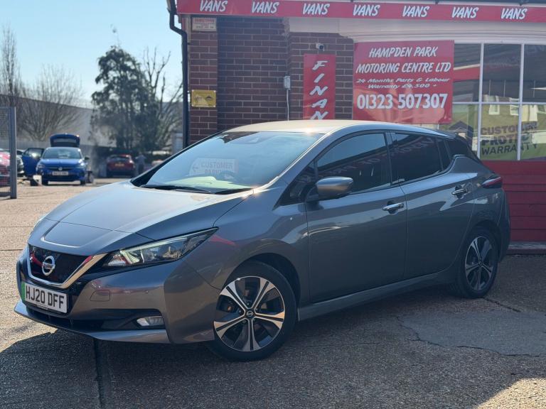 **24 MONTHS PARTS & LABOUR PEACE OF MIND NATIONAL WARRANTY INCLUDED IN THE PRICE**Hampden Park Motoring Centre is pleased to be offering this ULEZ compliant 2020 Nissan LEAF40kWh N-Connecta for sale, with ONLY TWO OWNERS FROM NEW and 61,500 miles. This car comes with COMPPREHENSIVE SERVICE HISTORY. The car will leave with an interim service, a new MOT and a PDI. Finished in Gun metallic with dark grey N-Connecta half leathertrim. **WHY BUY FROM US** **Established In 1980** **24 Month Warranty OnAll Cars Over £4500, &Those Not Covered By A Manufactures Warranty** **All Our Cars Are Hpi ClearSo You Can Buy WithConfidence** **Competitive FinanceRatesSubject To Status** **Multi Branches** **Open 7 Daysa Week IncBank Holidays** **Monday - Friday - 8.30am to 6pm** **Saturday - 9.00am to 5pm** **Sunday - 10am to4pm** **Bank holidays 10am to 4pm** For more pictures and a walk around videoplease go to [Website URL removed] Please call to arrange viewing and a test drive on 01323507307. Here at Hampden Park Motoring Centre, we have up to50carson show, also at our Hailsham branch we have up to 50 further cars available for viewing, please call 01323 449900 for more info. For more information on our LEAF please see the benefits below as stated Features Include: , 12v socket, 6 speakers, am-fm-dab audio system, aux socket, android auto and apple carplay, ev connect telematics system, nissan connect evo 8in touchscreen navigation and entertainment system, rear usb ports x2, 17in alloy wheels, body coloured door mirrors with integrated led indicators, door handles - chrome, electric folding door mirrors, front and rear electric windows, gloss black b-pillar, metallic blue rear finisher, rear privacy glass, zero emission badging - boot lid, 3 pin evse charging cable, 50kw chademo rapid charger, 6.6kw ac on board charger, blind spot warning, e-pedal, electric power steering, heat pump, intelligent cruise control, lane departure warning, mode 3 type 2 charging cable, rear view camera, speed limiter, 60-40 split folding rear seats, 7in tft screen combimeter, auto dimming rear view mirror, auto wipers, automatic air conditioning, front centre console and armrest, front seat back pockets, heat pack, illuminated charge port, leather d shaped steering wheel, manually adjustable drivers seat - slide - recline and lifter, manually adjustable passenger seat - slide and recline, remote audio control, start push button, tech pack,