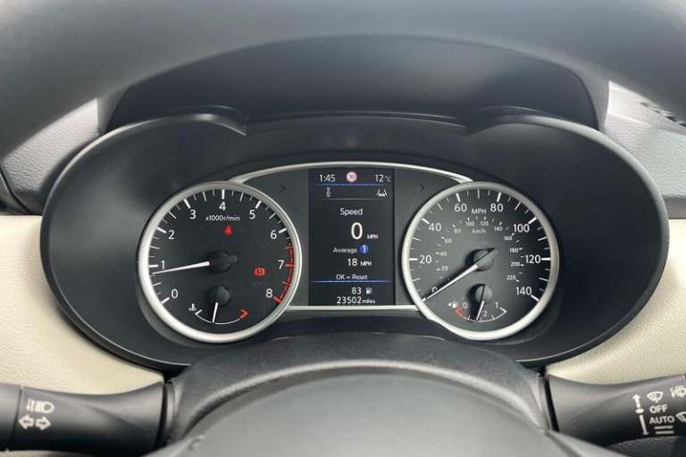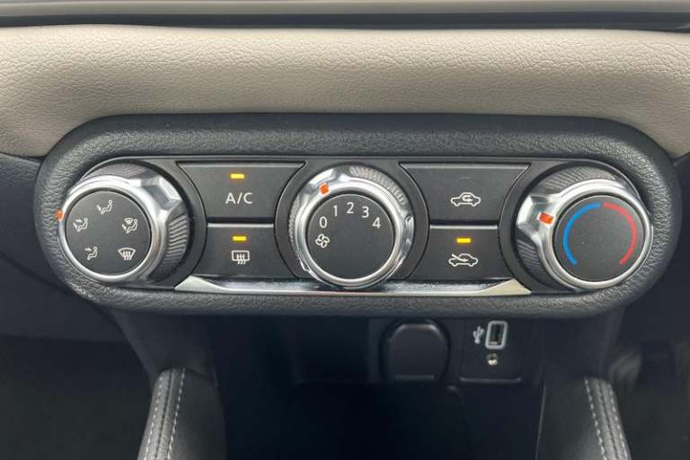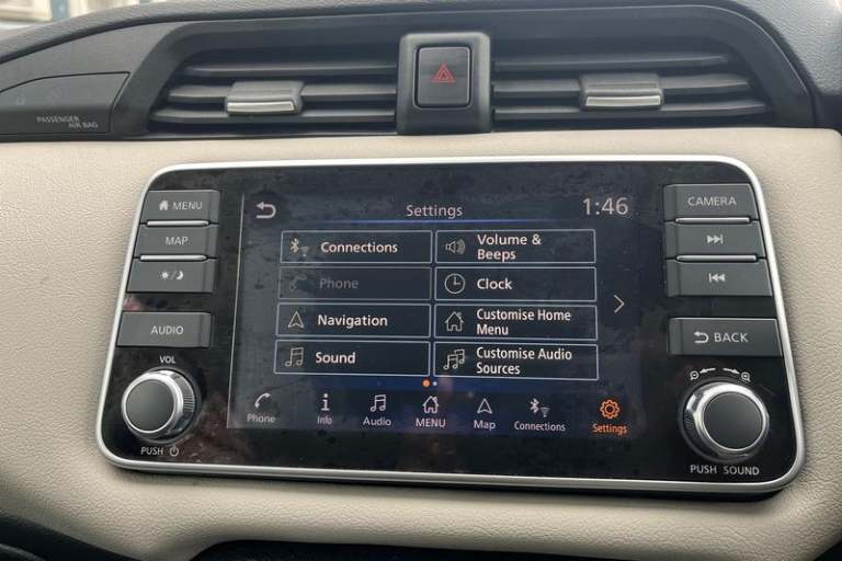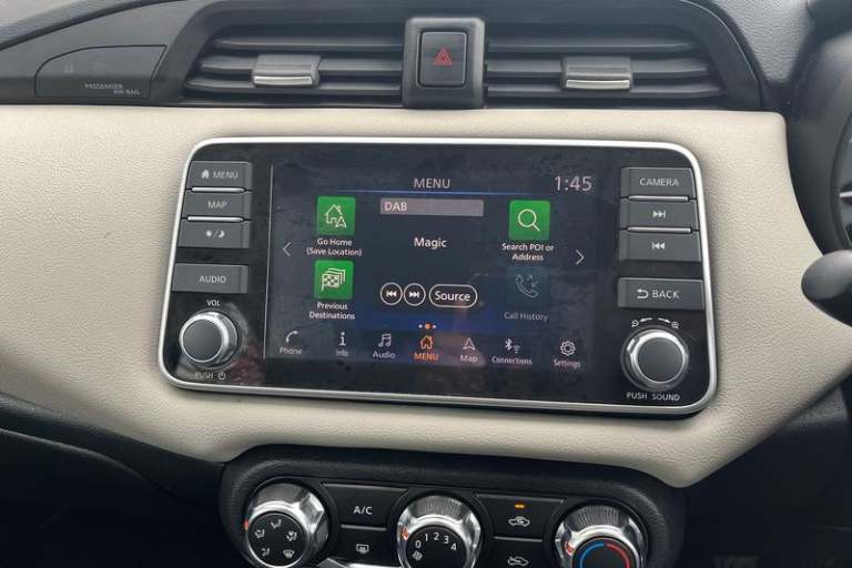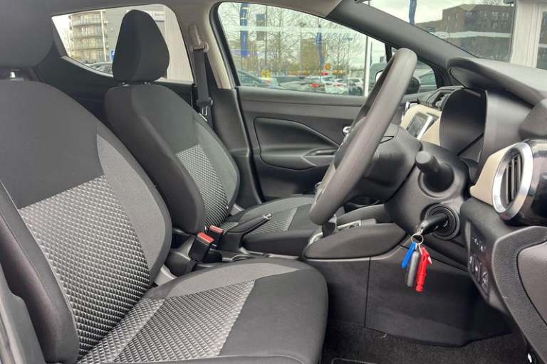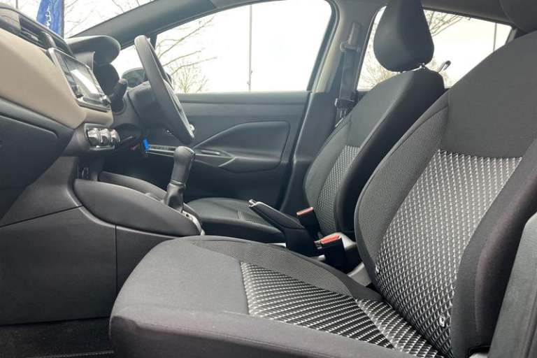 Adjustable speed limiter, Advanced drive assist display 5'' TFT coloured screen, Bluetooth system, Cruise control, Lane departure prevention, Lane departure warning system, Nissan Connect touchscreen navigation and Entertainment system, Outside temperature gauge, Power assist steering, Rear parking sensors and rear view camera, Service interval indicator, Smartphone integration with Apple CarPlay and Android auto, Stop/start system, Tomtom connected services, Traffic sign recognition, Trip computer, 4 pocket halogen headlights with signature finisher, Antenna, Automatic activation of hazard warning lights, Automatic headlights with dusk sensor, Body colour front door handles, Concealed rear door handles, Door mirror integrated indicators, Electrically adjustable door mirrors, Front fog lights, High beam assist, High mounted stop lamp, Jacknife key type x1, LED signature daytime running lights, N-Tec badge, Power front windows, Rain sensor windscreen wipers, Rear privacy glass, Rear roof spoiler, Rear wiper, Rear wiper with reverse link, 12V power point front, 2 height adjustable rear headrests, 3 cupholders, 60/40 split folding rear seat, Boot compartment cover, Boot light, Casual cloth upholstery, Chrome interior door handles, Driver's seat manual height adjust, Driver/passenger sunvisors and vanity mirrors, Front and rear door pockets with bottle holders, Front console storage box, Gear shift indicator, Grey PVC front door pads, Height adjustable front headrests with satin