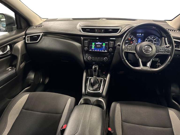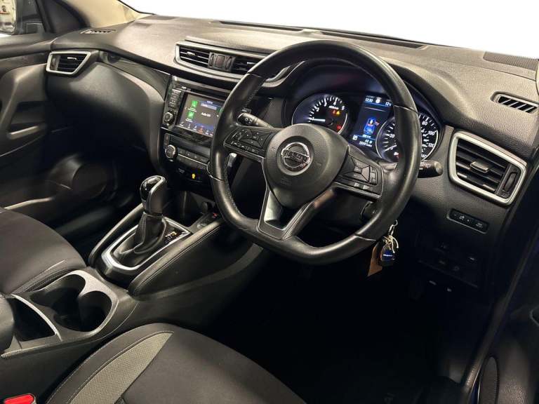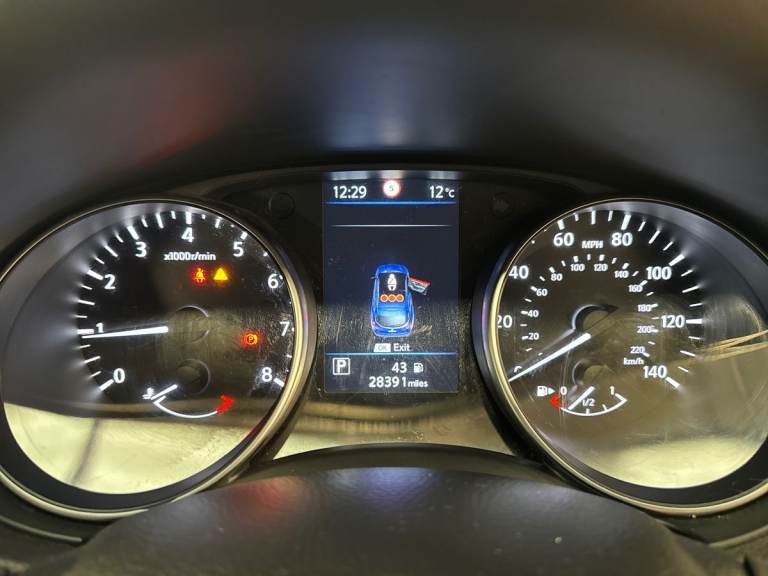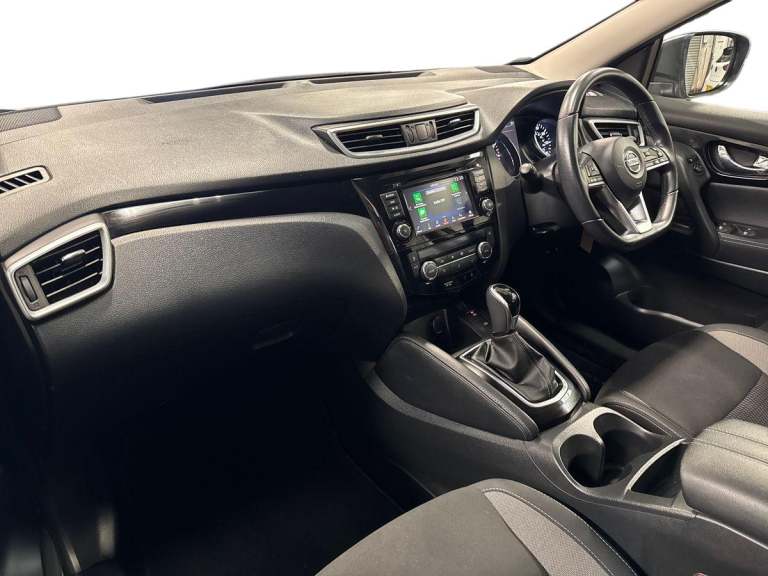 ..Advanced drive assist display 5'' TFT coloured screen, Apple car play/Android Auto, Bluetooth connectivity, Cruise control + speed limiter, Electric speed sensitive power steering, Front parking sensors, Idle stop/start system, Lane departure warning system, Nissan connect evo 7'' touchscreen navigation and entertainment system, Normal or sport selectable steering, Outside temperature sensor, Premium Tomtom connected services, Rear parking sensors, Rear view camera, Service interval indicator, Smartphone integration, Traffic sign recognition, Trip computer, Voice control system, Nissan chassis control (intelligent ride control, intelligent trace control, intelligent engine brake), 6 speakers, AM/FM radio, CD audio system, Aux-in socket, DAB Digital radio, USB port, Anti dazzle rear view mirror, Auto wipers, Body colour bumpers, Body coloured door handles, Body coloured door mirrors, Chrome window surround, Daytime running lights dip function when turn signal applied, Electric folding door mirrors, Electric front and rear windows with one touch illuminated window controls, Electrically adjustable door mirrors, Front fog lights, Halogen headlights, Heated door mirrors, High beam assist, Intelligent auto headlights, LED indicators in door mirrors, Rear roof spoiler, Rear wiper with reverse link, Shark fin antenna, Signature LED daytime running lights, Underbody vortex generators, 2 X front 12v power sockets, 3 height adjustable rear headrests, 60/40 split folding rear seat, Ambient interior lighting, Ambient lighting around centre console, Bi-colour cloth upholstery, Boot lighting, Centre console storage box/armrest, Chrome interior door handles, Driver's seat manual height adjust, Dual zone climate control, Front and rear door pockets with bottle holders, Front and rear seat belt pre-tensioners with load limiters, Height adjustable front headrests, ISOFIX restraints on outer rear seats x2, Leather D shaped steering wheel, Leather gear lever, Leather knee pad, Manual height adjustable passenger seat, Manual lumbar support on driver seat, Pollen filter, Rear armrest with 2 cupholders, Tilt/telescopic adjustable steering wheel, Velour floor mats, 6 airbags - Driver, front passenger, curtain and side airbags, ABS, ESP, EBD and brake assist, Auto hold function, Child locks on rear doors, Electronic parking brake, Front and rear seat belt warning, Height adjustable front seatbelts, Hill start assist, Intelligent emergency braking with pedestrian recognition,