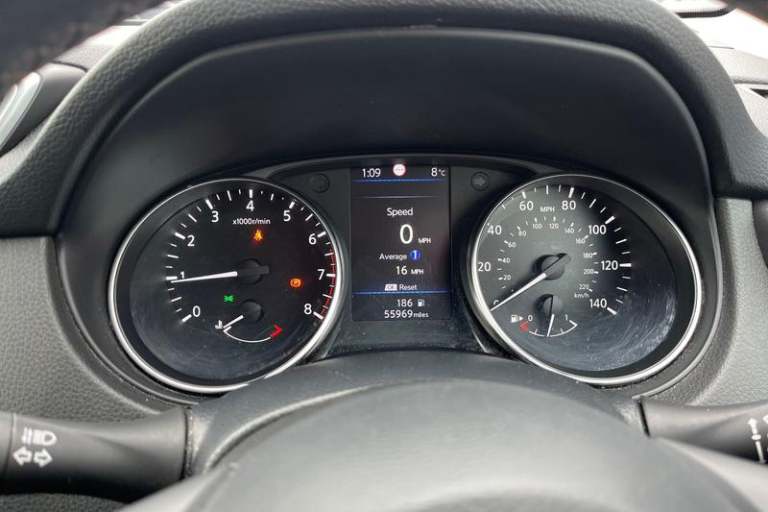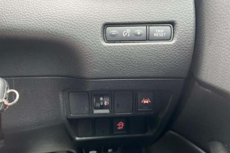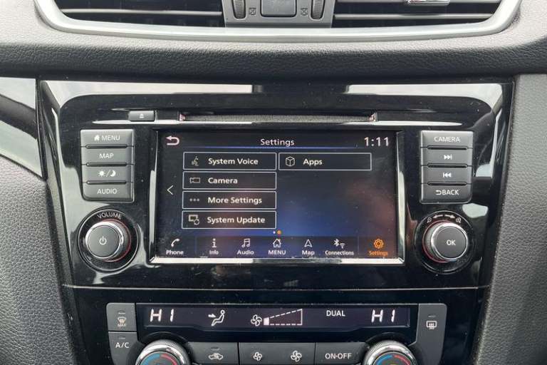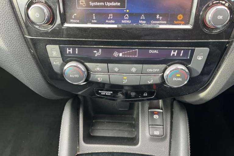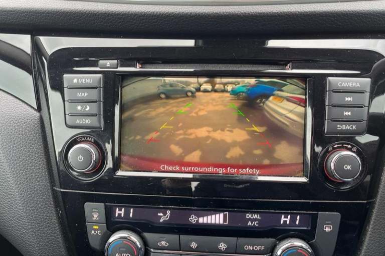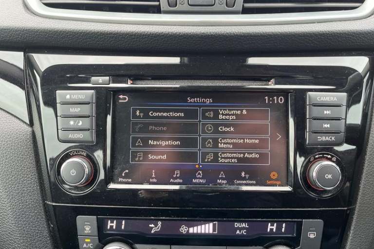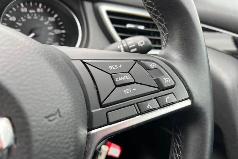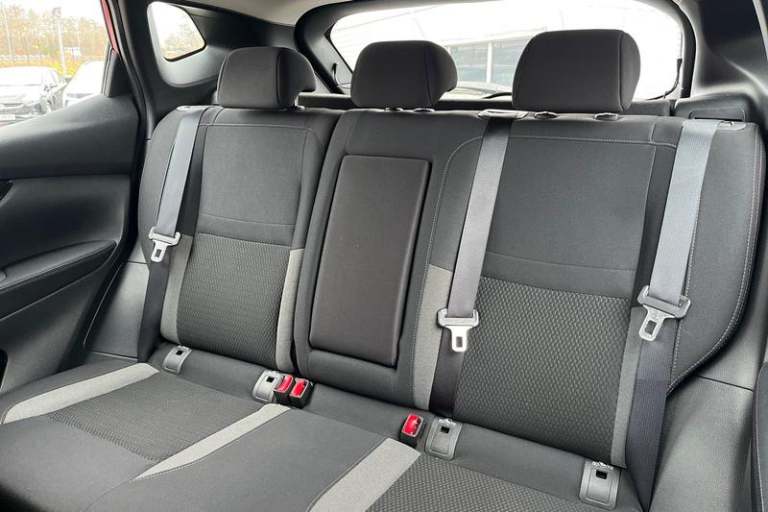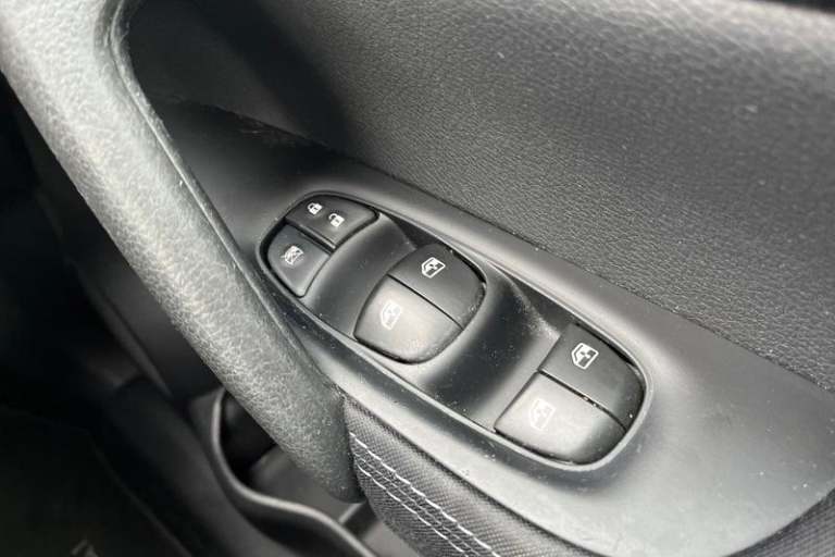 Advanced drive assist display 5'' TFT coloured screen, Apple car play/Android Auto, Bluetooth connectivity, Cruise control + speed limiter, Electric speed sensitive power steering, Front parking sensors, Idle stop/start system, Lane departure warning system, Nissan connect evo 7 touchscreen navigation and entertainment system, Normal or sport selectable steering, Outside temperature sensor, Premium Tomtom connected services, Rear parking sensors, Rear view camera, Service interval indicator, Smartphone integration, Traffic sign recognition, Trip computer, Voice control system, Anti dazzle rear view mirror, Auto wipers, Body colour bumpers, Body coloured door handles, Body coloured door mirrors, Chrome window surround, Daytime running lights dip function when turn signal applied, Electric folding door mirrors, Electric front and rear windows with one touch illuminated window controls, Electrically adjustable door mirrors, Front fog lights, Halogen headlights, Heated door mirrors, High beam assist, Intelligent auto headlights, LED indicators in door mirrors, Rear roof spoiler, Rear wiper with reverse link, Shark fin antenna, Signature LED daytime running lights, Underbody vortex generators, 2 X front 12v power sockets, 3 height adjustable rear headrests, 60/40 split folding rear seat, Ambient interior lighting, Ambient lighting around centre console, Bi-colour cloth upholstery, Boot lighting, Centre console storage box/armrest, Chrome interior door handles, Driver's seat manual