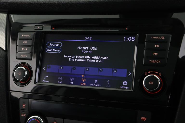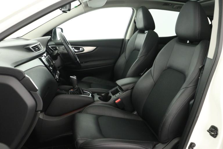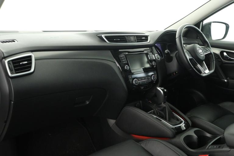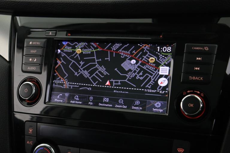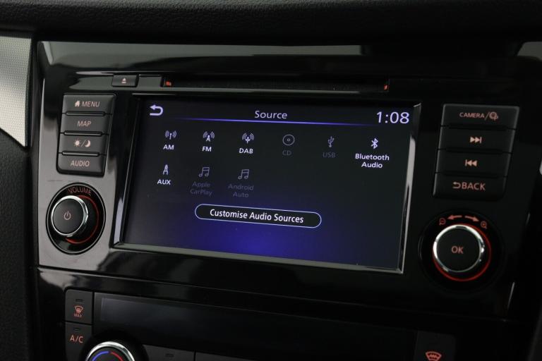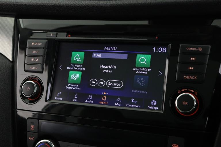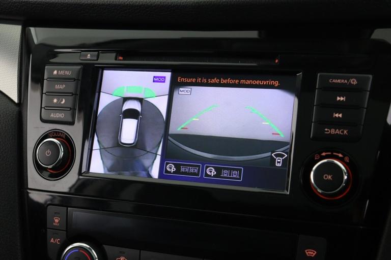 ..Advanced drive assist display 5'' TFT coloured screen, Android Auto, Apple CarPlay preparation, Bluetooth connectivity, Electric speed sensitive power steering, Front parking sensors, Intelligent around view monitor, Intelligent parking assist, Lane departure warning system, Nissan connect evo 7'' touchscreen navigation and entertainment system, Normal or sport selectable steering, Outside temperature sensor, Push button starter, Rear parking sensors, Rear view camera, Service interval indicator, Smartphone integration, Stop/start system, Tomtom connected services, Traffic sign recognition, Trip computer, Voice control system, Diesel particulate filter, Nissan chassis control (intelligent ride control, intelligent trace control, intelligent engine brake), AM/FM radio, CD audio system, Aux-in socket, Bose premium 8 speaker system, DAB Digital radio, Rear USB connection, Steering wheel mounted audio controls, USB port, Anti dazzle rear view mirror, Auto wipers, Body colour bumpers, Body coloured door handles, Body coloured door mirrors, Chrome window surround, Daytime running lights dip function when turn signal applied, Electric folding door mirrors, Electric front and rear windows with one touch illuminated window controls, Electric front/rear windows, Electrically adjustable door mirrors, Front fog lights, Halogen headlights, Heated door mirrors, High beam assist, Intelligent auto headlights, LED indicators in door mirrors, Matt silver roof rails, One touch 4x auto windows with illuminated switches, Panoramic sunroof with one touch shade, Privacy glass, Rear roof spoiler, Rear wiper with reverse link, Shark fin antenna, Underbody vortex generators, 2 X front 12v power sockets, 3 height adjustable rear headrests, 60/40 split folding rear seat, Ambient lighting, Ambient lighting in centre console, Boot lighting, Centre console storage box/armrest, Chrome interior door handles, Configurable luggage board system, Dual zone climate control, Electrically adjustable driver seat, Front and rear door pockets with bottle holders, Front and rear seat belt pre-tensioners with load limiters, Height adjustable front headrests, Individual rear seat reading lights, ISOFIX restraints on outer rear seats x2, Leather D shaped steering wheel, Leather gear lever, Leather knee pad, Manual height adjustable front passenger seat, Manual lumbar support on driver seat, Manual lumbar support on passenger seat, Monoform front seats with plastic backboard, One touch electric