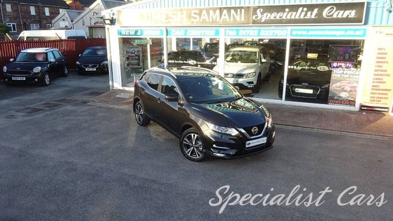 Nissan Qashqai N-Connecta TDCI 1.7 5dr. Black pearl metallic. A beautiful one* owner example with great specification including Glass panoramic roof •SAT NAV •Reverse camera •Glass Roof Pack - £450.00 •18in Alloy Wheels •60-40 Split Rear Folding Seats •Advanced Drive Assist Display - 5in TFT Coloured Screen •AM-FM-CD Audio System with DAB •Ambient Lighting Centre Console •AutoHold Function - Stand Still Assist •AUX Socket for MP3 Player •Bluetooth with Audio Streaming •Cruise Control with Speed Limiter •Dual Zone Climate Control Air Conditioning •Electric Heated Auto-Folding Door Mirrors •Front and Rear Electric Windows •Glossy Black Dash Trim •Halogen Headlamps •Height Adjustable Front Head Restraints •Height Adjustable Front Seatbelts •Hill Start Assist •Intelligent Around View Monitor •Intelligent Auto Headlight •Intelligent Park Assist •ISOFIX Child Seat Anchoring Points - Rear x2 •Leather D Shaped Steering Wheel •Matt Silver Roof Rails •Nissan Connect 7in Touchscreen Navigation and Entertainment System •Nissan Intelligent Key •Pearl Black - £575.00 •Rear View Camera •Remote Central Locking with Superlocking •Selectable Steering - Normal or Sport •Smart Vision Pack •Smartphone App Integration •Start Push Button •Tech Pack •Plus much more. Lively 1.7 with 150 bhp, 6 speed manual gearbox, 50.4* combined MPG. The owner bought it as a pre-registered car* so it had delivery miles on it and has owned it from new. Brand new Michelin tyres recently fitted. Ready to drive away today. •Reserve this car TODAY either on our website 24/7 or call us on 01782 822 700 so no one else can beat you to it. •100% Deposit refund GUARANTEE if our car is not as described. We do honest videos to show you we have nothing to hide about our cars so you can make an informed decision sitting in your armchair at home. Click and collect from our showroom or ask about home delivery. •Accurate description and read our AWESOME Reviews to see why YOU should be buying your next car from Specialist Cars stoke. •By reserving a vehicle prior to viewing you are protected by distance selling regulations , you are also agreeing to the T&C of distance selling. Please ask for full/further details if.Glass Roof Pack, Pearl Black