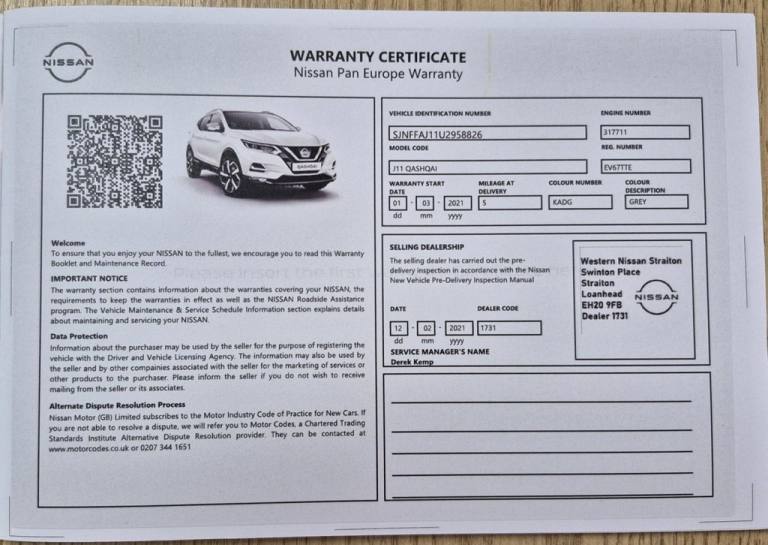 This head-turning SUV blends bold design with premium comfort and advanced technology. Powered by the efficient 1.3 DIG-T petrol engine, it delivers a smooth yet responsive drive—perfect for city cruising or long motorway journeys. With its blend of practicality, technology, and comfort, this Qashqai is a standout choice for anyone wanting style and substance in one smart package. Comes with 3 Nissan Services recorded with the last service carried out March 25 at 42,777 miles. MOT until December 2026 and it has 2 Keys. Features include Apple CarPlay and Android Auto, Heat Pack, Glass Roof Pack, Park Assist, Around View Monitors, Cruise Control, Bluetooth, 19in Alloys and more. See below for the full list of features. Book today to view and test drive. Open 7 days a week. All part exchanges welcome. Please ask for details of our finance and extended warranty options, subject to status, Ts and Cs apply. ** You can reserve a car - without any obligation to actually buy it - by clicking on the green "Reserve Today" button on our website page - all we ask is for a fully refundable £99 holding deposit ** ** We offer Nationwide Delivery on most cars, so you can easily buy a car without visiting us ** ** We have built our reputation on nearly 50 years of Trust & Customer Service ** Please see our much-valued, genuine 5* reviews on Google, Autotrader & Facebook ** ** We are open Monday to Friday 9am - 6pm, Saturday 9 - 5 and Sunday 10 - 4 ** Please call us first on 01773 743333 if you are travelling from out of our area **.Nissan Connect with Apple Carplay and Android Auto , Black Nappa Leather with 3D Quilted , Heat Pack, Intelligent Around View Monitor, Intelligent Park Assist, Cruise Control with Speed Limiter, Bluetooth, DAB Digital Radio, Dual Zone Climate Control, Glass Roof Pack, Front and Rear Parking Sensors, 19in Alloy Wheels, USB Port, AUX Socket, AM-FM Radio and CD Audio System, Electrically Adjustable Drivers Seat, Memory Function Drivers Seat and Door Mirrors, Electric 4-Way Lumbar Support on Driver Seat, Electrically Adjustable Passenger Seat, Passengers Seat with Manual Lumbar Support, Advanced Drive Assist Display , Selectable Steering - Normal or Sport, Anti Dazzle Rear View Mirror, Front and Rear Electric Windows, Interior Ambient Lighting, Leather D Shaped Steering Wheel, Steering Wheel Mounted Audio Controls, Centre Console Storage and Armrest, Leather Gear Lever, Start Push Button, Tilt and Telescopic Adjustable Steering Wheel, Trip Computer , 60-40 Split Rear Folding Seats, Boot Light, LED Pack, LED Headlights, Intelligent Auto Headlight, Auto Wipers, Privacy Glass, Electric Auto-Folding Door Mirrors, LED Signature Daytime Running Lights, Matt Silver Roof Rails, Adaptive Front Lighting System, Chrome Glass Window Surround, High Beam Assist, Rear Roof Spoiler, Gun Metallic, ESP ABS EBD and Brake Assist, Intelligent Emergency Braking with Pedestrian Recognition, Lane Departure Warning, Traffic Sign Recognition, Hill Start Assist, AutoHold Function , Electric Speed-Sensitive Power Steering, Electric Parking Brake, TPMS - Tyre Pressure Monitoring System, ISOFIX Restraints on Outer Rear Seats, Nissan Intelligent Key, Remote Central Locking, Thatcham Category 1 Alarm, Nissan Anti Theft System Immobiliser, Driver and Passenger Front Airbags, Front Side Airbags, Front Curtain Aitbags