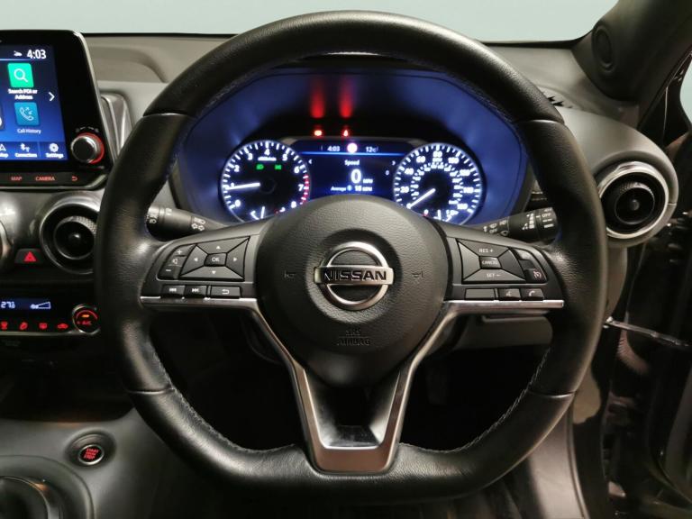 Step into style with this black Nissan Juke. Enjoy seamless connectivity with Apple CarPlay and onboard wifi, while LED headlights help you stand out day or night. Intelligent Lane Intervention and Lane Departure Warning add extra safety, and cruise control makes every journey a breeze. You'll appreciate the comfort of climate control and the modern look of 17in alloy wheels. Stay connected and confident wherever you go with this smart, sleek SUV. 2 services recorded, last serviced on 20/11/2025 at 37,380 miles. MOT to 30/03/2026. Visit our website for service history, online valuation, full vehicle specification plus multiple images. Any feature/option specified here is from 3rd party data. We cannot guarantee the accuracy of any specification supplied by a 3rd party. We recommend that you physically check the specification of the vehicle on site prior to purchase. This information does not form part of the buying contract. Terms & Conditions apply. We have over 2,000 cars available from our 10 national branches, check our website to see all our stock. Our Trustpilot rating is 4.4/5 with over 9,000 reviews.